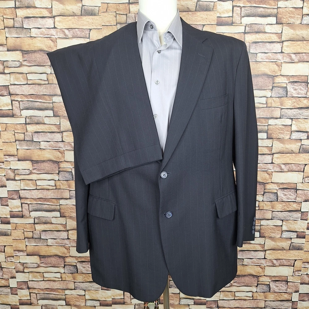 Joseph A Bank 2 Piece Suit Mens 48R 40X29 Black Stripe Wool Single Vented Quality used condition. Please check out the measurements before buying to ensure a perfect fit.Does have a fair Amount of Shoulder padding Shirt Size on Label 48R Shoulder- Hem 31.00'' Shoulder- Shoulder 21.00'' Shoulder- Wrist 24.50'' Armpit- Armpit 25.00'' Top button 24.00'' Everything ships within a day. Feel free to message me with any questions. Thank you very much. 12/9/24 Pants Pleated Cuffed Lined Quality used condition. Please check out the measurements before buying to ensure a perfect fit. Pants Size on Label Seam (Outer) 40.00'' Waist 38.00'' Waist- Crotch 12.50'' Inseam 29.00'' Extra inseam fabric 1.40'' Everything ships within a day. Feel free to message me with any questions. Thank you very much. 12/9/24
