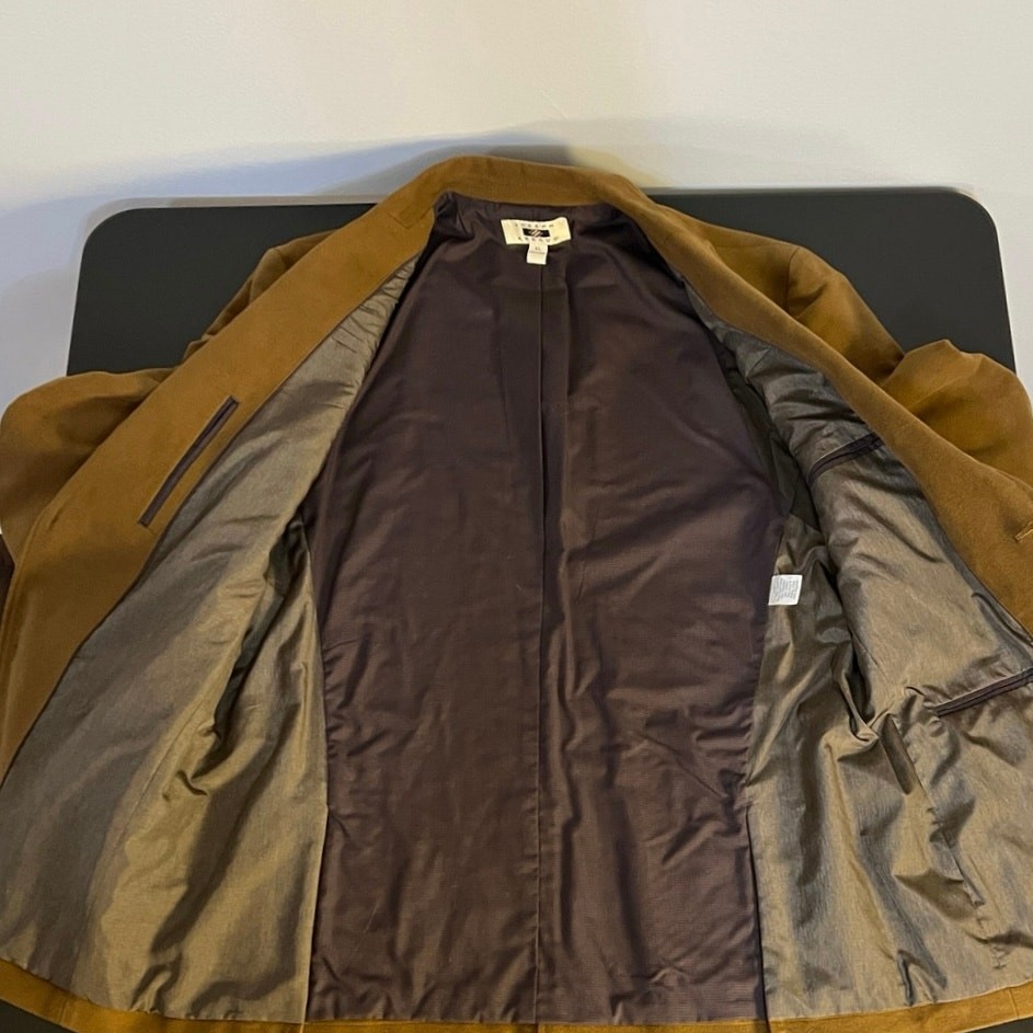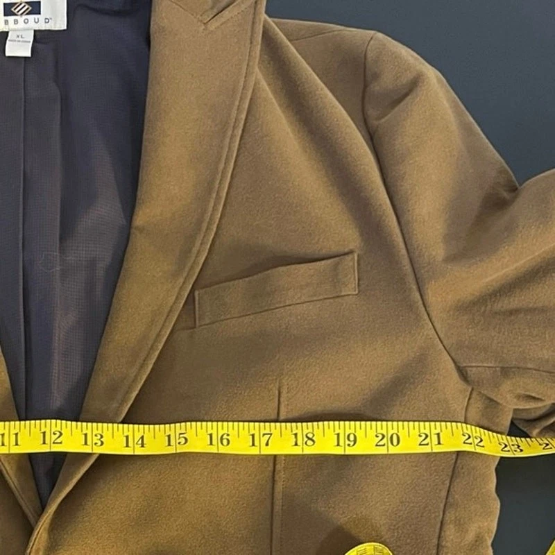 Joseph Abboud Camel Two Button Front Elbow Patch Cotton Blazer Size XL Excellent preowned condition Camel color Elbow patches Two button closure Interior/exterior pockets Double vent Shell: 100% cotton Lining: 65% polyester / 35% cotton Approximate Measurements (taken laying flat): 23in across the chest 29.5in from shoulder to hem All items are cleaned prior to listing Reasonable offers accepted Bundle and Save!! ***Shipments go out daily, Monday-Friday*** Classic Academia Professor Business Casual Preppy