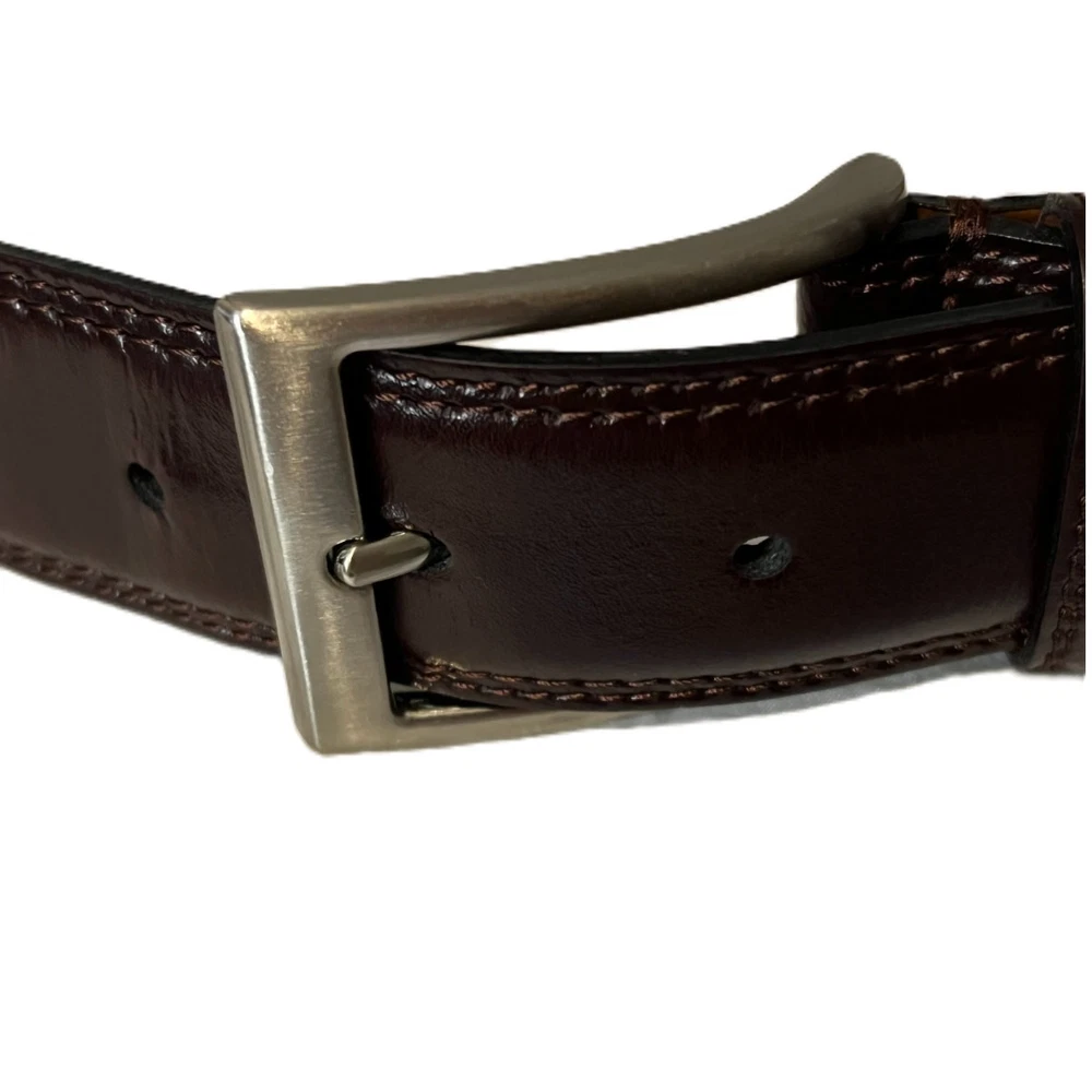 Joseph Abboud leather belt * perfect for any professional or dressy occasion. * designed for men's size 42 and is made in Italy, * solid brown leather belt * 1.25" width * silver brushed buckle accents * classic and preppy ** all items stored in smoke-free / pet-free home