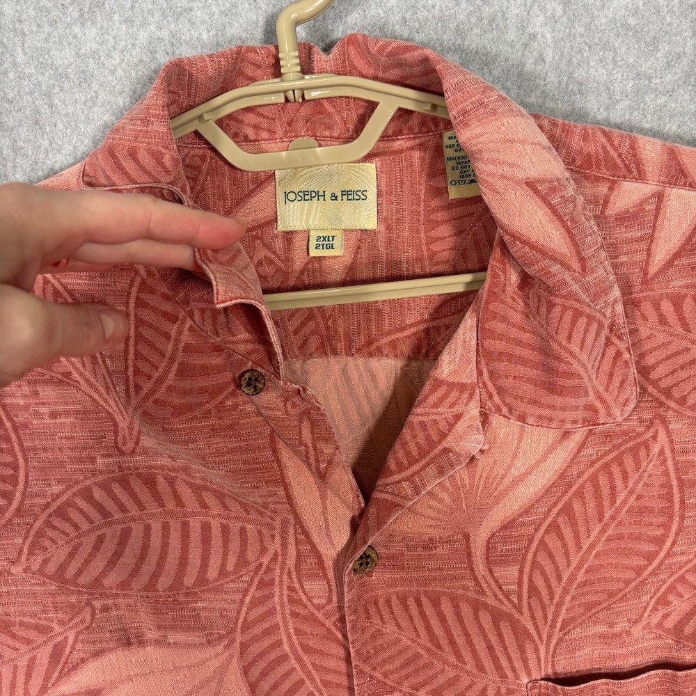 Joseph Feiss Shirt Mens 2XL XXL Red Silk Hawaiian Loop Camp Tiki Palm Faded Short Sleeve Pocket Hem Slit Tropical Aloha Beach Casual Woven Textured Pre-owned condition: minimal to no signs of wear, no stains or holes **Slits on side are open more than normal - see last photo** SKU 5826 **Please see all pictures for full item condition, details, and approximate measurements** - Ships Same/Next Day, Professional Seller, Offers Welcome, Like or watch for price drops - Item in photos is exact item you will receive - I list new items daily, be sure to browse my store/closet for more items - Bundle pricing and combined shipping available for additional savings - Feel free to send a message