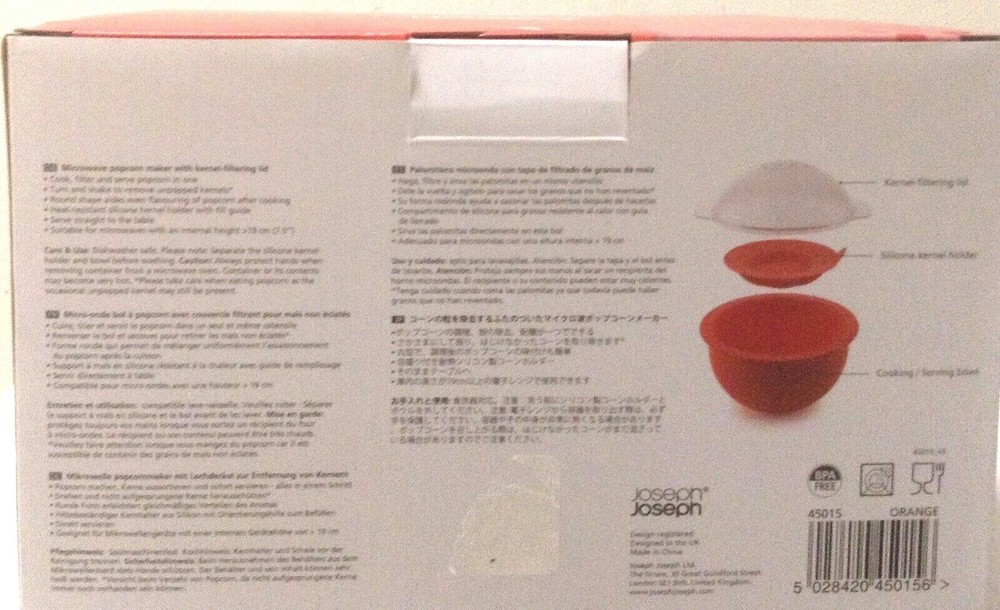 Joseph Joseph Microwave Popcorn Maker Kernel Filtering Lid Orange M Cuisine PLEASE NOTE: • If you are unhappy with your order for any reason, please submit your return request through eBay and we will be happy to resolve any issues. We cannot issue a refund for shipped orders until a return request has been filed Thank you for your business and we look forward to servicing you as a repeat customer in the very near future if you should have any questions or concerns about your item purchase, you may contact us via eBay Messages. Thanks for your business! Sincerely, Ann Makool