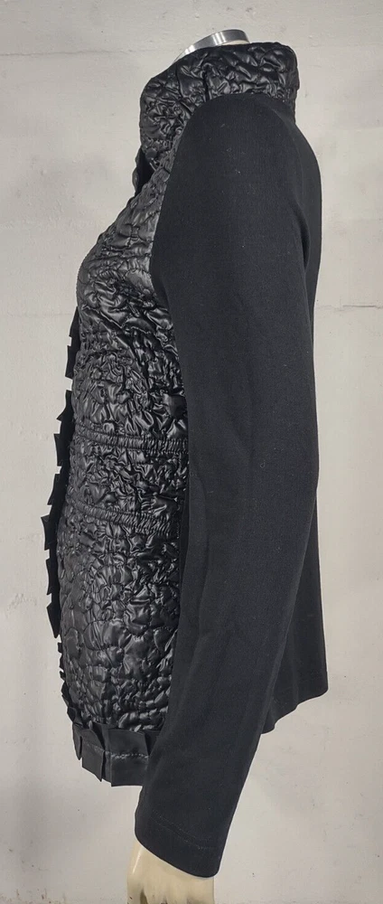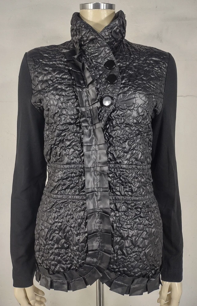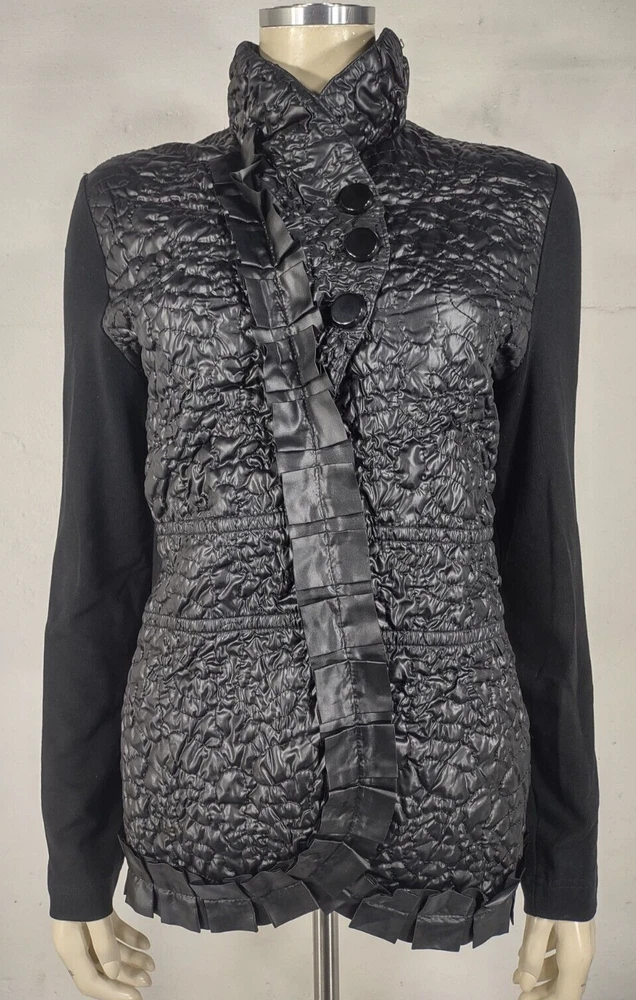 ladies button front jacket blouse Joseph Ribkoff brand black; textured size 10 (Please refer to measurements below!) fabric content unknown Excellent pre-owned condition! No flaws to speak of. Measurements lying flat: Bust (pit to pit): 19.5 inches. Length (from nape of neck to bottom hem): 25 inches. Policies and Disclosures: RETURNS: Returns are accepted within 30 days of purchase. Buyer is responsible for return shipping. All items from this store come with an identification tag; Item(s) must be returned in original condition with the I.D. tag intact for a refund. SHIPPING: I do combine shipping when multiple items are purchased. In order to provide you with the least expensive price, you will need to send me a message requesting an invoice with combined shipping. CLOTHING: My goal is to sell only the finest quality new and gently used clothing items in my stores, and I strive for 100% satisfaction with every order. While my home is smoke-free, other pre-owned items from different sources cannot be guaranteed as smoke-free or pet-free. It is assumed that you as the buyer will be cleaning the garment once it arrives to you, so unless there is an obvious stain or odor, the clothing has not been laundered. I felt it was best left up to the buyer so no issues would surface regarding detergent allergies, shrinking, etc. Please note that any must or smoke odors can almost always be completely removed by adding 1 cup of distilled white vinegar to your normal wash cycle. I provide measurements on all my clothing items so that you, as the buyer, can make an informed decision about your purchase. Please use that information to compare it with a garment that fits you well to determine if the item will work for you. Seller will not assume responsibility for return postage on items that do not fit. COMMENTS: Please note that every item I sell is described to the best of my knowledge and ability, however, I am a human being, so occasionally I do make mistakes. Colors may vary slightly between screens and monitors. Sizing can vary from brand to brand. If you have any questions about the item(s), free to ask and I will do my best to get back with you in a timely manner. If you have any issues with your purchase, please do not hesitate to contact me prior to leaving negative feedback so we can try to resolve the issue. I am flexible and easy to work with. If you see something you are interested in, feel free to make a reasonable offer! (On a side note: Lowball offers are insulting and will be declined.) Take a moment to browse my other items for sale. I offer a large variety of items, with new items daily, so there’s something for everyone! Thanks so much for taking the time to look and have a wonderful day!