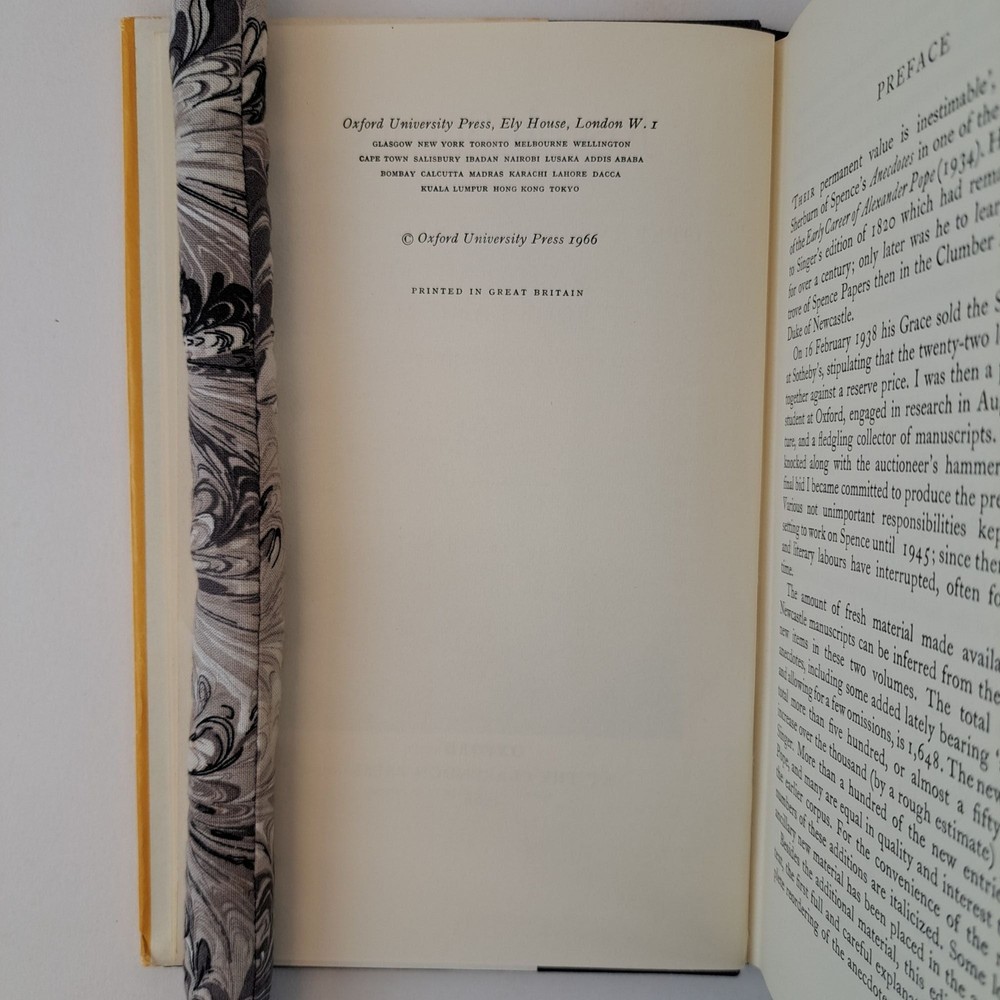 OBSERVATIONS, ANECDOTES, AND CHARACTERS OF BOOKS AND MEN COLLECTED FROM CONVERSATION [Two Volumes] Author: Spence, Joseph; Osborn, James M. [Editor] Title: OBSERVATIONS, ANECDOTES, AND CHARACTERS OF BOOKS AND MEN COLLECTED FROM CONVERSATION [Two Volumes] Publication: Oxford: Clarendon Press, 1966 Edition: First Edition Thus Description: Octavos, two volumes. In Very Good condition with Good dust jackets. Orange spines with black lettering. Jackets with moderate shelf wear, light plus creasing, and light plus chipping at edges, corners, and heads and tails of spines. Light shelf wear to surfaces of jackets. Very minor rubbing to lower edges of text blocks; a few scattered pencil annotations. Second volume with the bookplate of Ronald Paulson, leading expert on William Hogarth and former professor of English literature at Yale and Johns Hopkins. [Multivolume set. Additional postage necessary for expedited/international orders. Economy International shipping unavailable due to size/weight restrictions. For international/expedited customers, please inquire for rates.] Shelved in Room A. Seller ID: 1389648 Subject: Books on Books & Reference Welcome to the eBay store of Second Story Books! DC's Oldest Rare and Used Bookstore, Second Story Books operates two open shops in the Washington D.C. metropolitan area. We have an extensive internet presence and provide accredited appraisals member ASA. This listing was created by Bibliopolis.