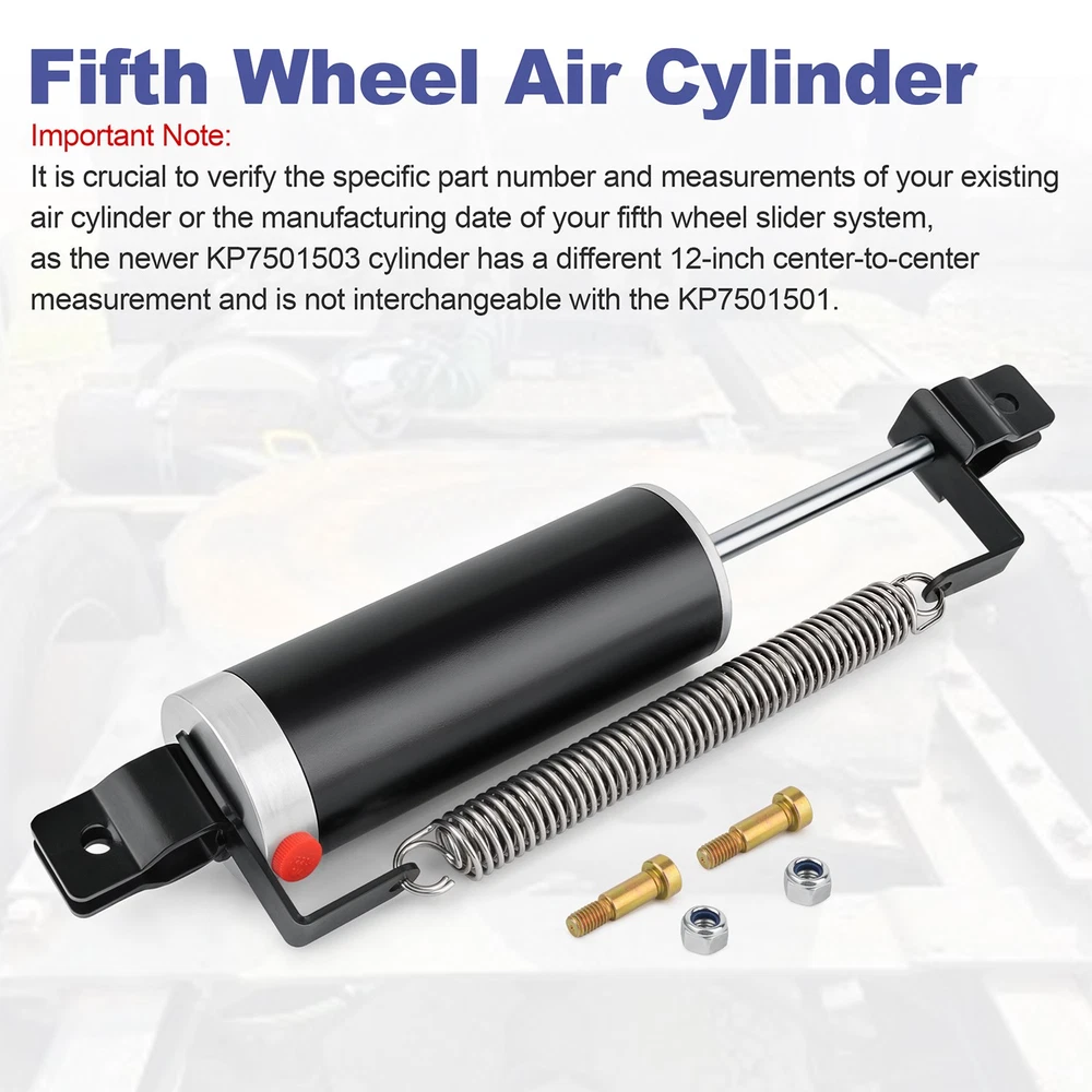 Jost Fifth Wheel Slider Air Cylinder KP7501501 - OEM Replacement 1770SK7501501 Item specifics Condition:New Brand:Aftermarket Part Type:Fifth Wheel Air Cylinder Manufacturer Part Number:KP7501501 Superseded Part Number:1770SK7501501 Old Style Jost Air Cylinder(Jost Fifth Wheel Air Cylinder) 15-3/4 inches center-to-center length. Used on Sliders Shipped Before April 2005 This is the "old style" or original design air cylinder. The original internal spring design is no longer available (NLA), and replacements like the KP7501501 now feature an external spring design. It is considered to have universal vehicle compatibility for the specific fifth wheel application it was designed for, fitting various truck makes like Peterbilt, Volvo, Freightliner, International, etc., provided they have the correct pre-April 2005 Jost slider. Cross Reference SK7501501,1770SK7501501 Important Note: It is crucial to verify the specific part number and measurements of your existing air cylinder or the manufacturing date of your fifth wheel slider system, as the newer KP7501503 cylinder has a different 12-inch center-to-center measurement and is not interchangeable with the KP7501501. Payment Delivery details Terms of sales About us Contact us Payment Paypal Preferred. Delivery details · USPS Standard Shipping. · Order processing: within 1 business day upon payment(excluding holidays and weekends). · Shipped from: US Warehouse Terms of sales · Please read the item description and check the pictures carefully before ordering. · Return or refund is available only if item DOA or there's error in item description causing the item not fitting the need. In such cases, seller pays for all related shipping cost. · Returns are also acceptable if buyer purchased this by mistake and item is still in good condition for reselling. Buyer is responsible for all related shipping cost. · Buyer need to file an application for return within 60 days after receiving the item. Items returned must be still in good condition as they were received. Return notes: 1.Please contact us for return and we will proceed with following instructions. 2.Returning the package with a tracking method, like USPS. The RMA#(Return Merchant Authorization Number=Your ebay ID) must be clearly written on the return package, otherwise the package will be refused. 3.Email us the return tracking number. 4.All returns will be inspected prior to a credit being issued. About us We are specialized in auto parts accessories for many years and we also sell items on ebay for several years. If you have questions about our items and services, please kindly feel free to contact us, we will try our best to satisfy you within 24 business hours. Contact us Please be free to email us by clicking the "Asking a question" link, once there is any pre-sale or after-sale inquiry for our items. We will email back in 24 working hours. If you'd like to put a neutral or negative feedback, or open the ebay or paypal case, please email us so we could try our best to resolve the issue.