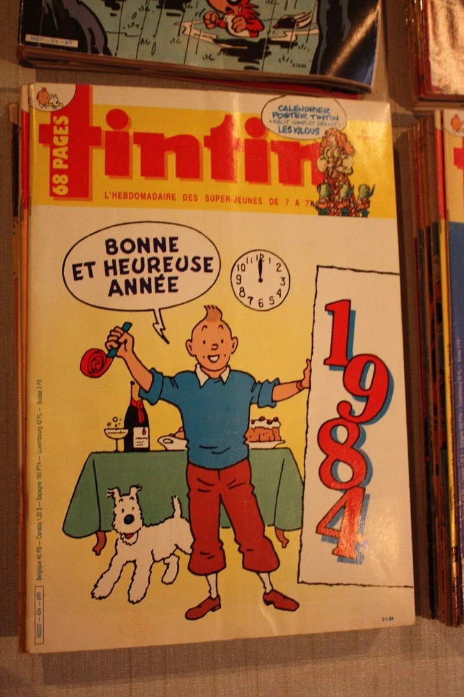 Journal Hebdomadaire Super-Jeunes TINTIN 1984 no. 1 à 52 Année complète Journaux en bon état général. Il existe des petits froissements. Quelques journaux ont l'épine renforcée avec du scotch tape clair Aucune page manquante, Envoi très soigné