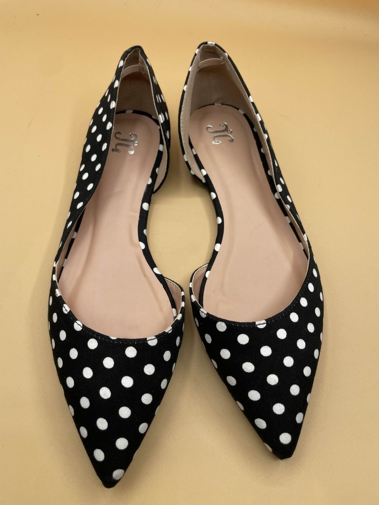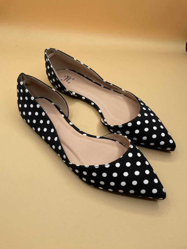 Journee Collection Cortni D'Orsay Flats Polka Dot Pointed Toe Womens Size 10 Pre-owned, exact items on photos.