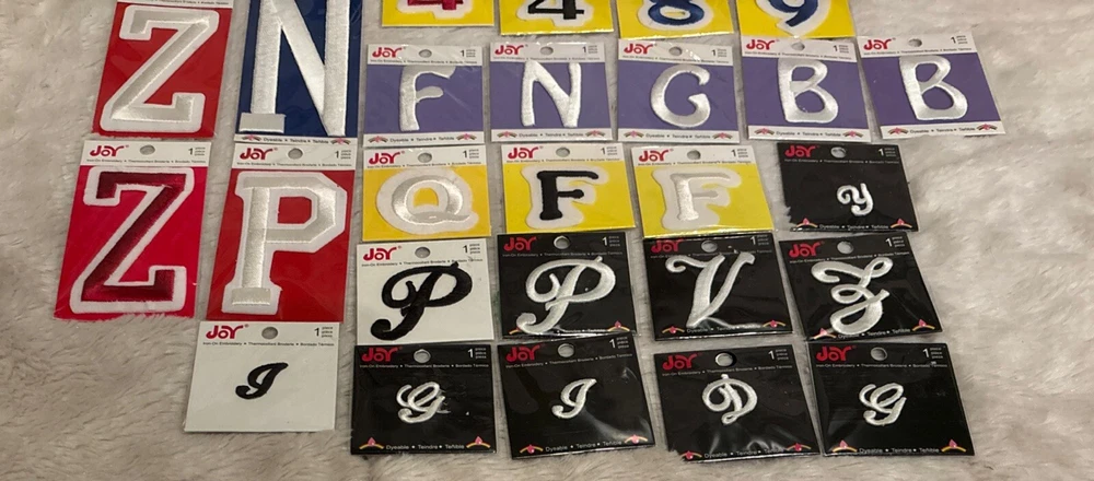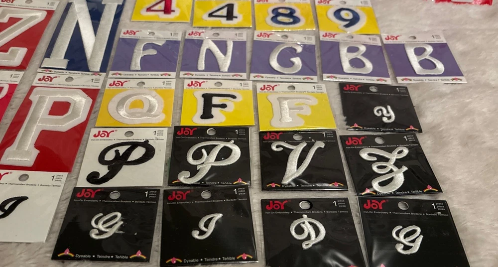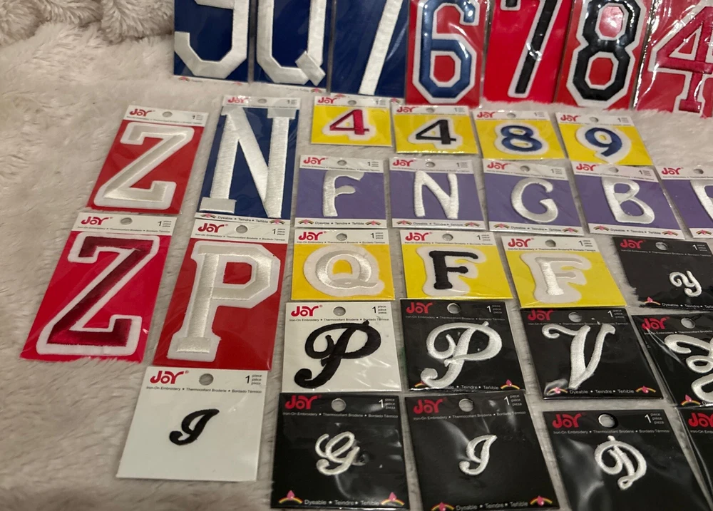 Enhance your sewing projects with the Joy Brand Embroidery Sew Iron On Appliqué set, featuring a versatile mix of 22 letters and 12 numbers. Perfect for personalizing accessories, bags, purses, jeans, pants, coats, and jackets, this variety lot is ideal for crafters and sewists looking to add a touch of custom flair to their creations. Each patch in this mixed lot is carefully embroidered, ensuring a high-quality and durable addition to your fabric. Proudly made in China, these appliqués are easy to apply with their iron-on design, making them a practical choice for both beginners and seasoned enthusiasts. Large to small.. cursive to numbers mixed lot