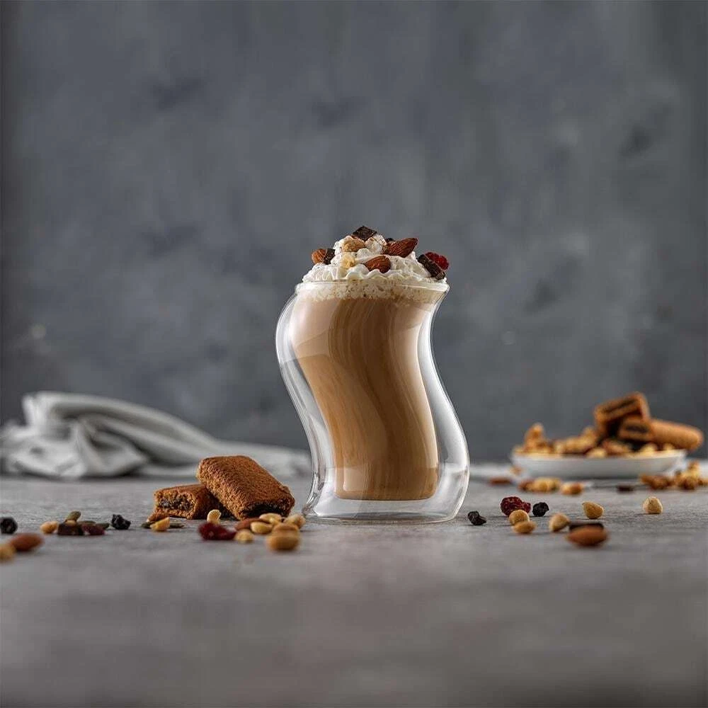 Enjoy your favorite drink like never before with the JoyJolt Cosmo Double wall Martini Glasses! double wall glasses are perfectly suited for a multitude of hot and cold beverages as well as desserts. Individually handmade of heat-resistant borosilicate glasses, they are designed to keep your liquid hot or cold for a longer period, while keeping your hands cool to the touch, it also eliminates need for coasters as no messy condensation will occur. As you are probably used to, JoyJolt offers not only quality glassware but also high-end products to transform any environment into something luxurious, and this set will not disappoint. Designed for any occasion and various beverages, its appearance is clear, feels comfortable in hand, and the close attention to detail will offer you the ultimate Free Shipping Over $49.99* Details JoyJolt Pivot Double Wall Coffee Tea Glasses - 13.5 oz - Set of 4 Product Description: Enjoy your favorite drink like never before with the JoyJolt Cosmo Double wall Martini Glasses! double wall glasses are perfectly suited for a multitude of hot and cold beverages as well as desserts. Individually handmade of heat-resistant borosilicate glasses, they are designed to keep your liquid hot or cold for a longer period, while keeping your hands cool to the touch, it also eliminates need for coasters as no messy condensation will occur. As you are probably used to, JoyJolt offers not only quality glassware but also high-end products to transform any environment into something luxurious, and this set will not disappoint. Designed for any occasion and various beverages, its appearance is clear, feels comfortable in hand, and the close attention to detail will offer you the ultimate drinking experience. The JoyJolt glasses are the result of original craftsmanship and premium materials. These glasses are light, modern, ready to surprise any connoisseur. Our espresso shot glass has everything you need to treat yourself with a great coffee, an aromatic tea, or, why not, a quick cocktail after a long day. Full of class and finesse, this set will make an excellent addition to your bar. Features Set of four to share with your loved ones. 13.5 oz /405 ml. Elegant and modern packaging. Unique shape, ergonomic feeling. Stunning double-wall design. Ideal for every temperature drink. Borosilicate glass - lighter and durable. Condensation resistant