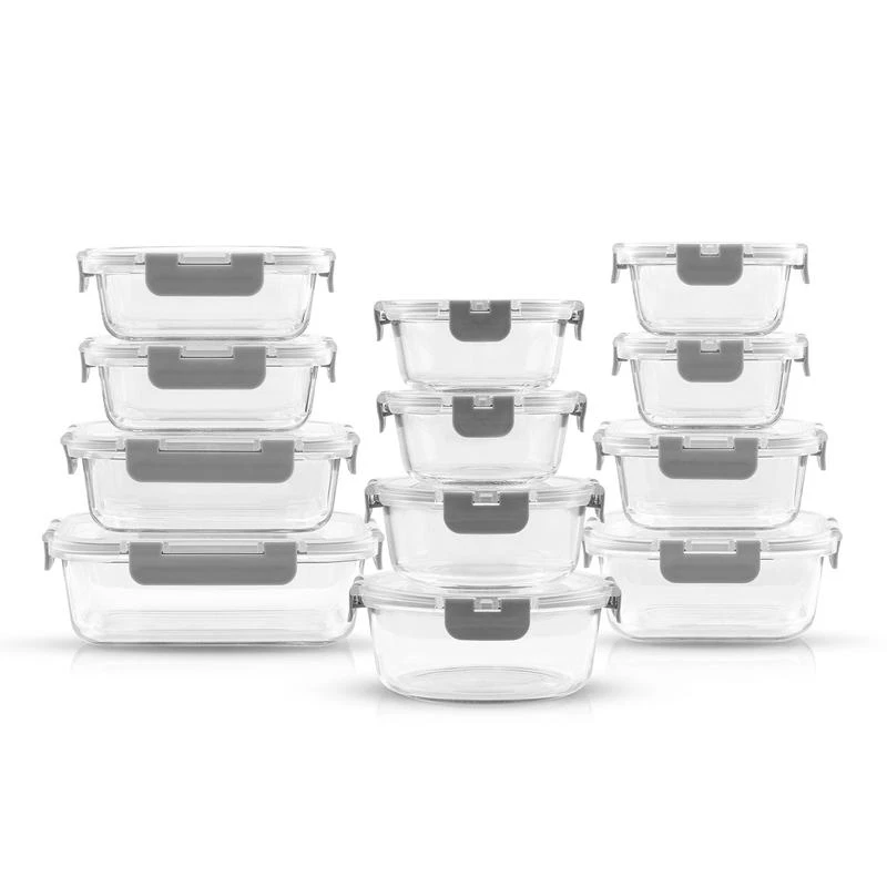 Wave goodbye to dreary, mismatched tupperware and say hello to our glass storage set! Crafted from borosilicate glass, these containers are tough enough for the microwave, gentle for the fridge, and cozy in the freezer. And yes, you can absolutely go from freezer to oven without any breakage! With airtight BPA-free plastic lids, your leftovers will stay as fresh as the moment they were made. 12 Borosilicate Glass Containers with Airtight Lids 4x Rectangle Sizes: 33.5oz (8x6”), 20.5oz (6.75x5”), 2x 12.5oz (4.125x5.5”) 4x Square Sizes: 25.5oz (6”), 16.5oz (5.125”), 2x 9.5oz (4.3”) 4x Round Sizes: 31oz (6.75”), 20.5oz (5.875”), 13.5oz (5.125”) Lead-Free Borosilicate Glass BPA-Free Lids with Inner Silicone Lining Freezer and Fridge Safe (Glass+Lid) Dishwasher, Microwave, and Oven Safe (*Glass Only) Handwash Only Lids Suggested to Wash Before First Use Gift Boxed with Secure Padding Limited 1-Year Warranty