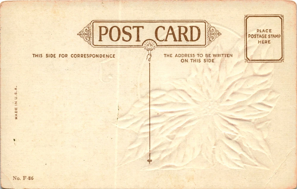 MAKE AN OFFER. THE MORE YOU BUY THE BETTER DEAL I WILL ACCEPT This postcard is a festive Christmas greeting, with a message of good cheer sent to a friend. It is labeled as Made in U.S.A. with the number F-86. The front of the postcard features a decorative design with the word Joyous Christmas and a stylized J in the center.