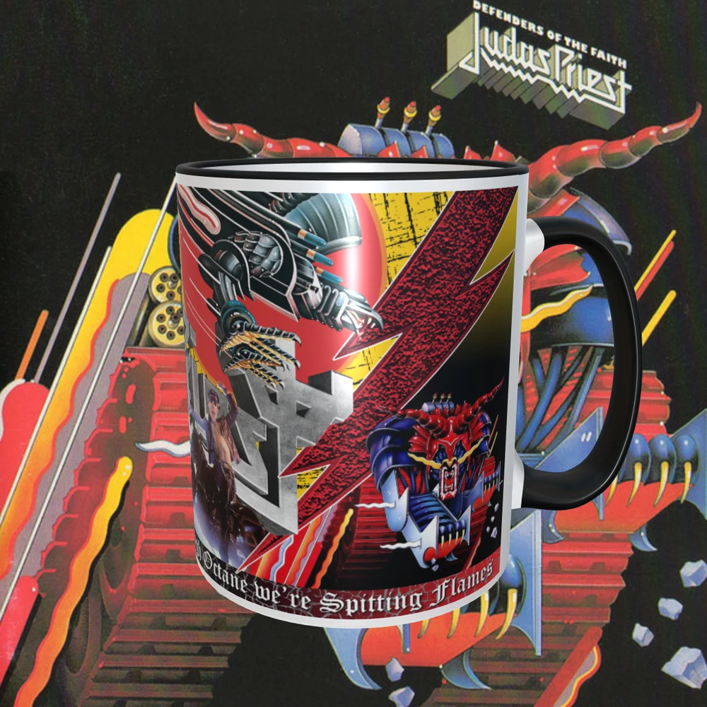 Judas Priest 1 1oz Mug NEW Dishwasher Safe , Handle and inside are Black NEW Dishwasher Safe Shipped with USPS