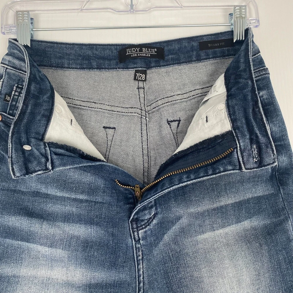 Judy Blue womens high Rise Skinny Fit Blue Jeans Size 7/28 Stretch Comfort Excellent Condition. Please see photos for measurements comes from a smoke and pet free place, you can contact us if you have questions. Please note that some photos may not show accurate shades. Photos are of the actual item you will receive. See photos for details.