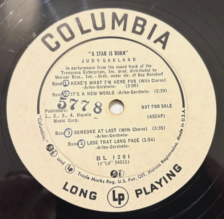 The product is a vintage 1954 mono promo LP vinyl of Judy Garland's album "A Star Is Born." Released by Columbia, this 33 RPM record features the iconic artist's voice in English. The black vinyl LP comes in a paper sleeve and is in good plus condition, making it a valuable addition to any music collection from the 1950s era. With its unique promotional status and classic sound, this record is sure to be a standout piece for fans of Judy Garland and 1950s soundtracks & musicals. Sale conditions for all new/old stock vintage (20+ years) still-sealed record albums *Read condition description. *Visual grading to the best of my ability. *No returns accepted if opened (Sealed copy only). *All returns must be in same condition when received. *List and sold as collectible, investment, and/or future PSA grading, and not a playing copy. *For playing and enjoyment, I recommend a NM-Mint copy. *Original or replacement paper inner sleeve. *Record with no warping. *No cover. *If you have any questions or concerns before buying, feel free to contact me. Thank you. Vintage 50s Columbia Records BL 1201 Mono Promo, Radio Station, DJ Copy Judy Garland "A Star Is Born" (1954) Soundtrack Vinyl LP Condition: Pre-owned.