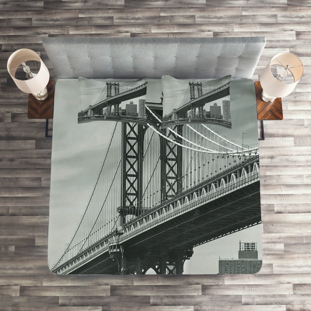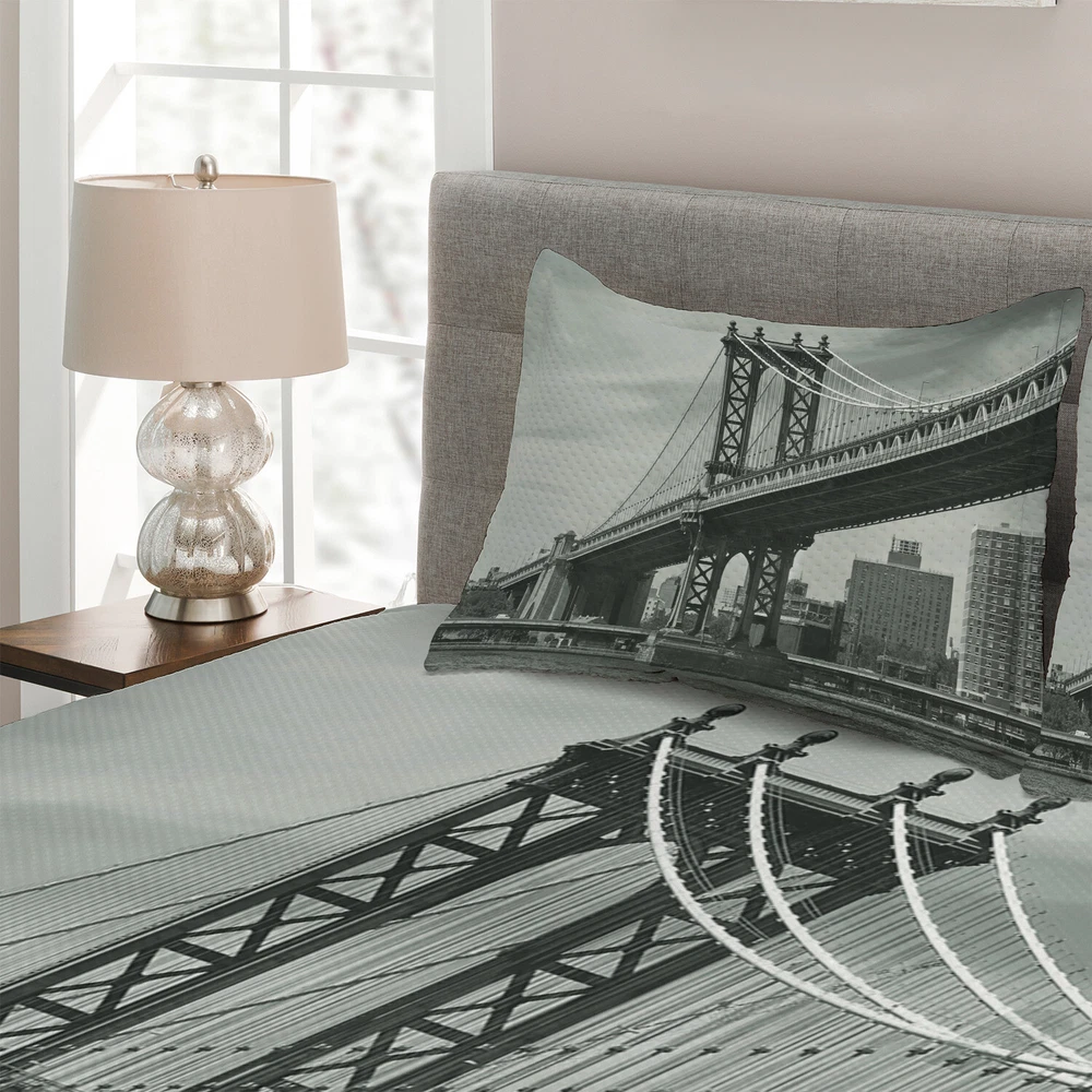 Vintage Quilted Coverlet Set King Size Bridge in New York City with 2 Shams Quilted Bedspread set with pillow shams included. SQUARE pattern quilted design with digital print. KING SIZE SET: 1 King Size Bedspread (104" W X 88" L) and 2 Pillow Shams (36" W X 20" L). QUEEN SIZE SET: 1 Queen Size Bedspread (88" W X 88" L) and 2 Pillow Shams (30" W X 20" L). TWIN SIZE SET: 1 Twin Bedspread (68" X 88") + 1 Pillow Sham (30" X 20"). OVERSIZED and HEAVY WEIGHT so great coverage along the sides of bed and won't fall off easily. MADE FROM: Double brushed high density soft spun polyester for optimal softness & ultimate comfort. Excellent stitching & workmanship. A luxurious product for homes, dorm rooms, hotels, guest rooms. It's a modern alternative of the traditional classic. Practical to use for being polyester, feels like cotton. Can also be used as a blanket. Coverlet set is made from very durable and sustainable material which is SUPER SOFT & BREATHABLE. Will not endanger your health or environment. Only ECO FRIENDLY inks used. No chemicals used, No dye substance harming the health of you or your family. Colors won't fade thanks to new digital printing methods. Also a great gift idea. You can find a design for everybody and every interest. Customized, personalized products are very popular. As manufacturers of digital printed home textiles, we follow current trends and bring you the latest home fashion. The digital images we display have the most accurate color possible, however due to differences in computer monitors, we cannot be responsible for variations in color between the actual product and your screen. Due to manual measurement, please kindly allow 1-2 cm discrepancy. CARE INSTRUCTIONS: Machine wash with cold water; Do not bleach. Tumble dry on low heat. Iron on low/medium heat. The Bedspread & Pillow Shams are printed on the FRONT SIDE ONLY, the back of them are plain white colored. Comforter is NOT INCLUDED in the set.