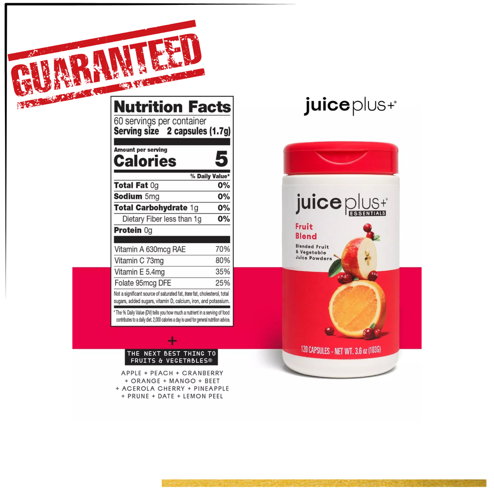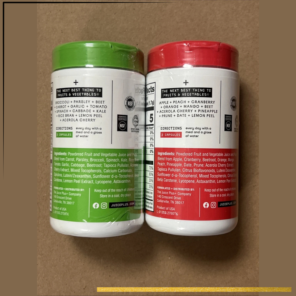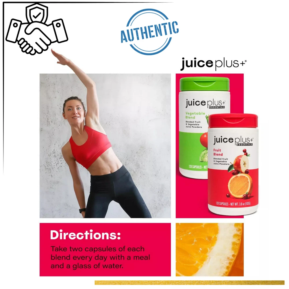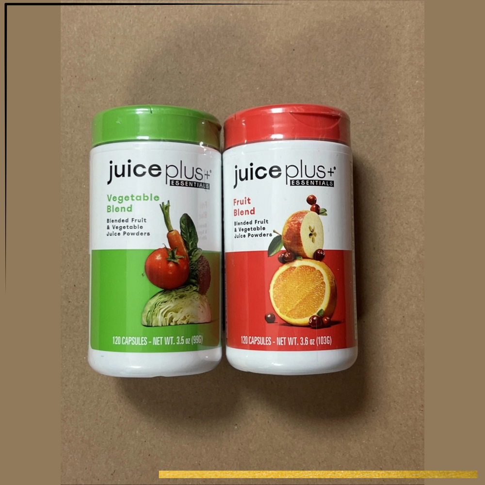 Get the power of real produce in a convenient capsule with Juice Plus+ Fruit & Vegetable Juice Powder Capsules . This 2-bottle set includes 120 fruit blend capsules and 120 vegetable blend capsules , providing whole food-based nutrition made from the juice powders of over 30 different fruits and vegetables . Designed to complement your daily diet, these capsules deliver vital nutrients from real foods to support your immune system, heart health, energy levels, and overall wellness . Juice Plus+ uses a proprietary process to capture the goodness of fresh produceβwithout synthetic additives. Proudly made in the USA and trusted by customers worldwide for premium quality and authenticity. π Key Features π 240 Total Capsules (120 Fruit + 120 Veggie) β Two bottles delivering a powerful combination of nutrients π± Plant-Based Nutrition β Free from artificial colors, flavors, preservatives, and non-GMO πͺ Boosts Overall Wellness β Supports immune function, heart health, and energy naturally π Free USA Shipping β Fast same or next business day dispatch