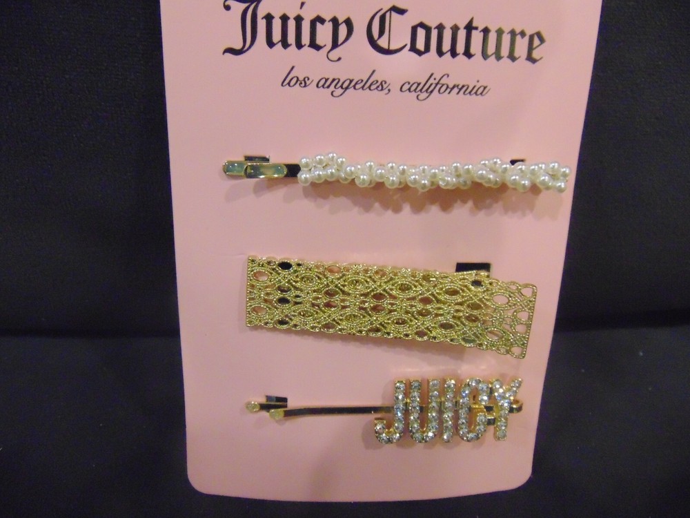 3 Pc Juicy Couture Bobby Pins Rhinestone and Faux Pearl Gold Tone Perfect for Any Type of Hair. Payment is due within 3 days of auction closing. Thanks Happy Bidding.
