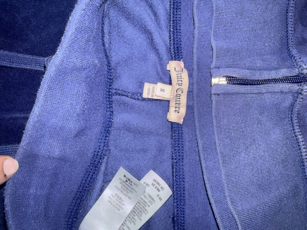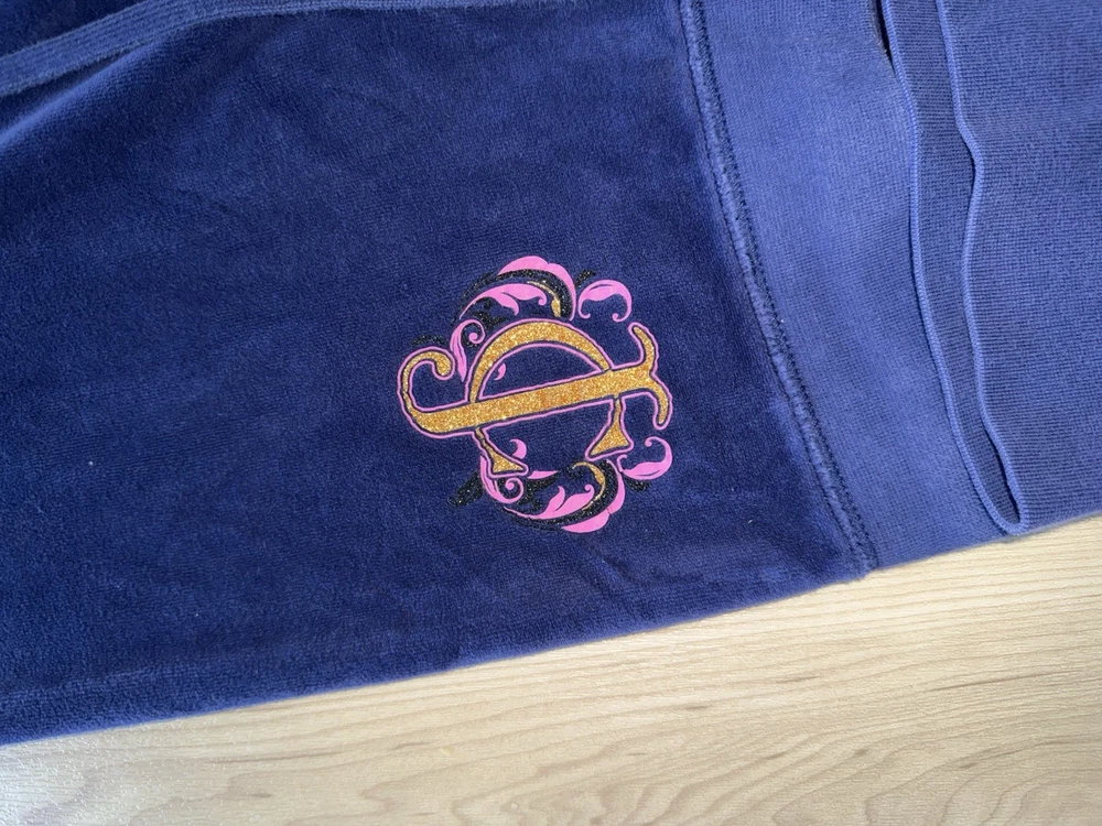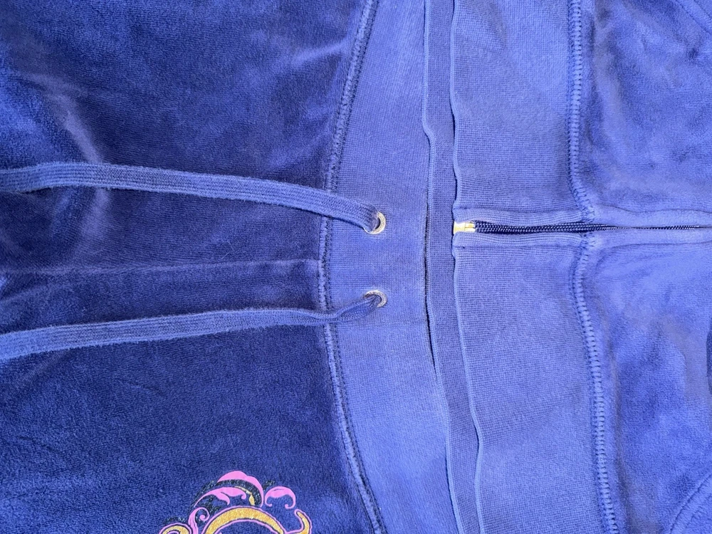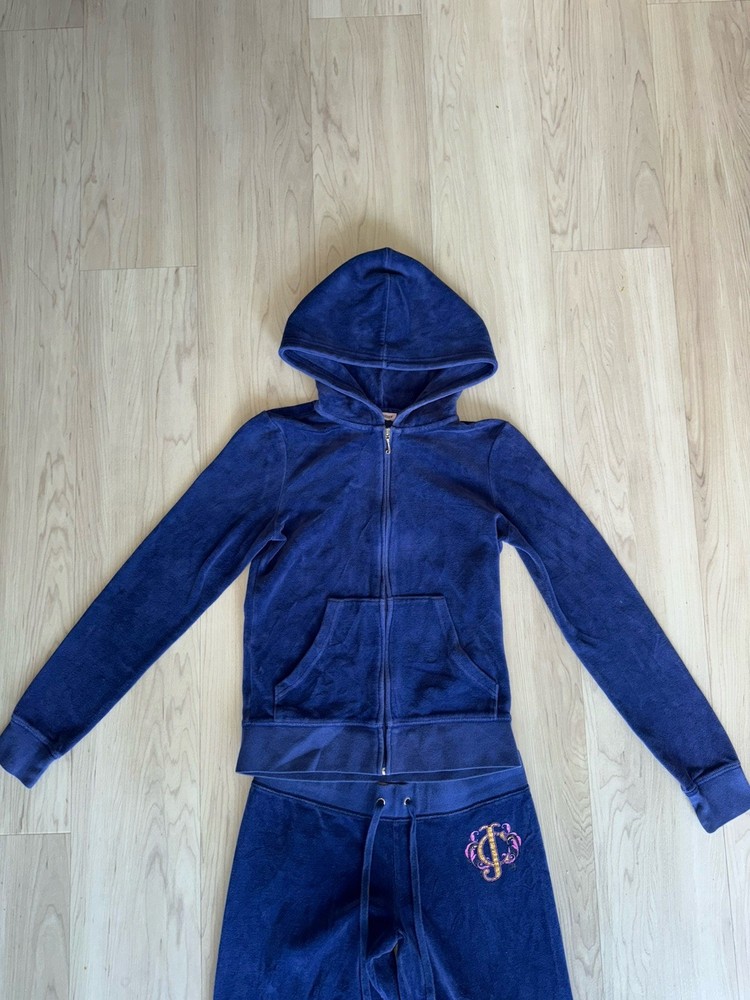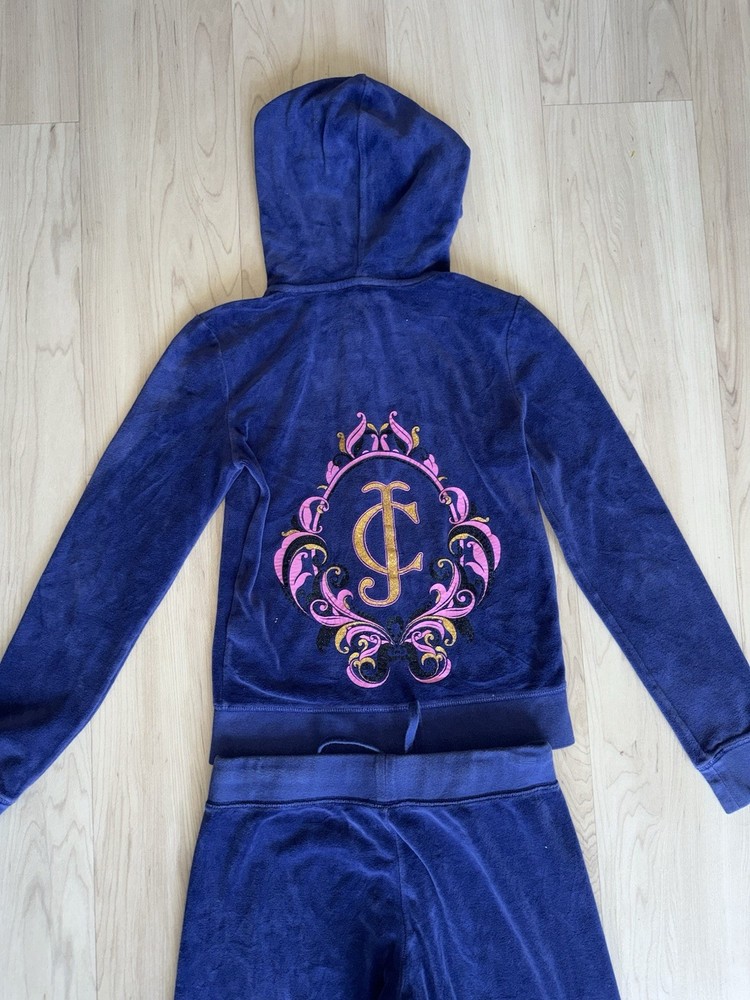 The Juicy Couture Women's Tracksuit from the 2000s in size S is a rare vintage find in a striking purple and blue color. Made of polyester velour, this 2-piece set features a solid pattern, long sleeves, and a zip closure for a comfortable fit. Perfect for activewear occasions, this tracksuit includes pockets for added convenience. Ideal for winter, fall, and spring seasons, it is a stylish and cozy choice for women looking to add a retro touch to their wardrobe.