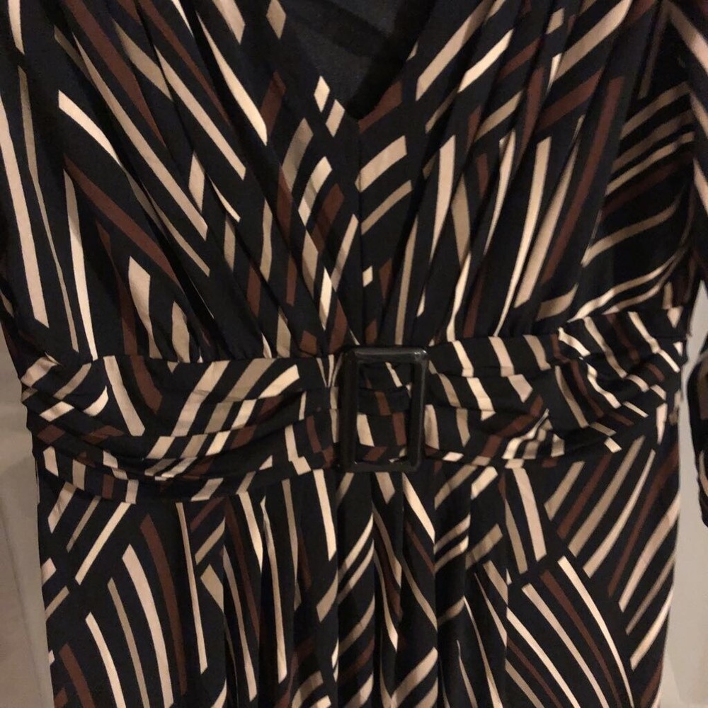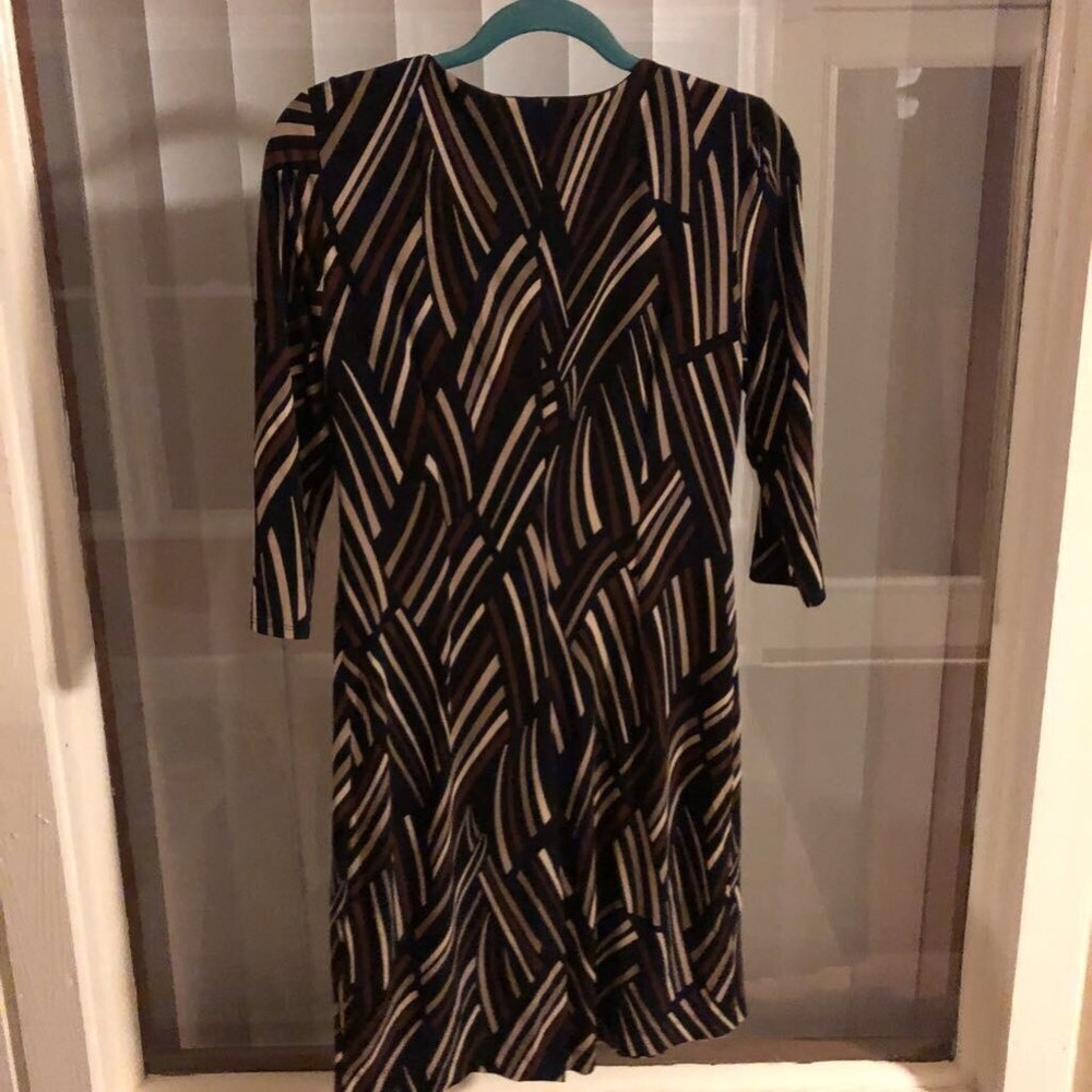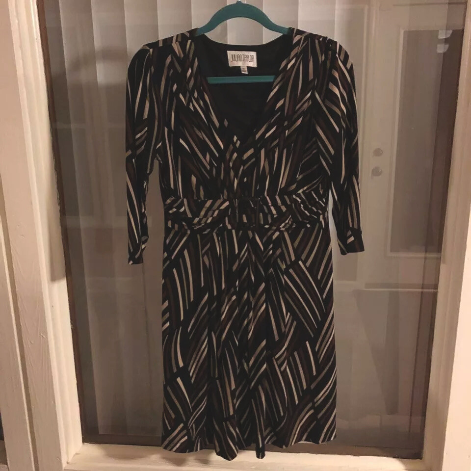 Julian Taylor Womens Sheath Dress Multicolor Stripe Empire Waist Petites 10P Jersey type material with faux high waist with decorative buckle. Three quarter length sleeves and gathered front that flows to hem. Pit to pit flat 17 inches Collar to hem 36 inches Sleeves 18 inches long C066 Brand: Julian Taylor Size Type: Petites Size: 10P Style: Sheath Dress Country/Region Of Manufacture: China Design Features: Empire Waist Accents: Buckle Sold as pictured. Thanks for looking! This listing was easily created using the SellHound Posting App!