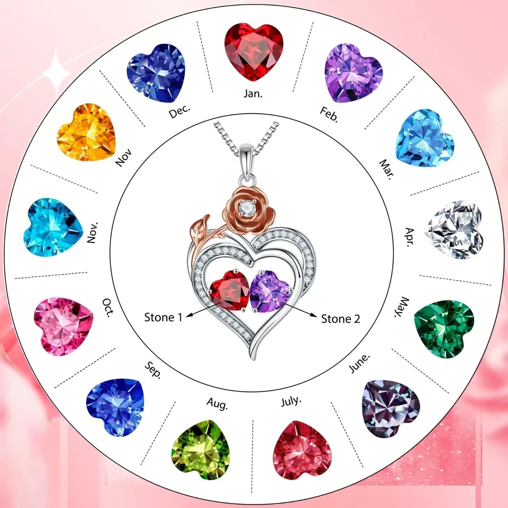 Rose Heart Birthstone Necklace BIRTHDAY FOR WOMEN: Suitable for any gift occasion. Perfect Gift for Birthday, Christmas, Mother's Day, Thanksgiving, Graduation, Wedding, Valentine's Day Features: Material: High Quality 925 Sterling Silver Finish: The look of the birthstone necklace is very nice. No tarnish, No Irritation, Hypoallergenic Rose Birthstone Necklace. For women and girls Jewelry Care Tips: *Keep away from chemicals, sweat, bath, crash to avoid damage. * Rub the first stud earrings with a polishing cloth to bring back the shine. Product Details: Package included:Delicate cross necklace in a beautiful gift box. Buy with confidence! Thank you for visiting Jewelry. is committed to provide the best jewelry and the best customer service to our customers. If you have any questions about birthstone necklaces for women, please contact us. ROSE FLOWER HEART DESIGN: The unique rose heart design symbolizes eternal love, when she wears this necklace, she will be reminded of your love and all the laughter. The chain length is 18"+2", suitable for most women. GIFTS FOR WOMEN: The double heart necklace represents the two of you forever tightly held together. This unique rose heart birthstone necklace is the perfect gift for women, mother, grandmas, aunts, sisters, friends, wives. Manufacturer Minimum Age:6+ MATERIAL: 925 STERLING SILVER double heart necklace for women rose heart pendant has a lasting layer of protection that minimizes scratches and tarnish-resistant. DAINTY GIFT PACKAGE: The pendant necklace comes with an elegant gift box. Unique Great Mothers Day special gift as a gift for her - your mother, wife, grandma, sister, Aunt, bonus mom, stepmom. AFTER SALES SERVICE: Any question about your Rose Heart Birthstone Necklace, please contact us and we will answer your question within 24hours.