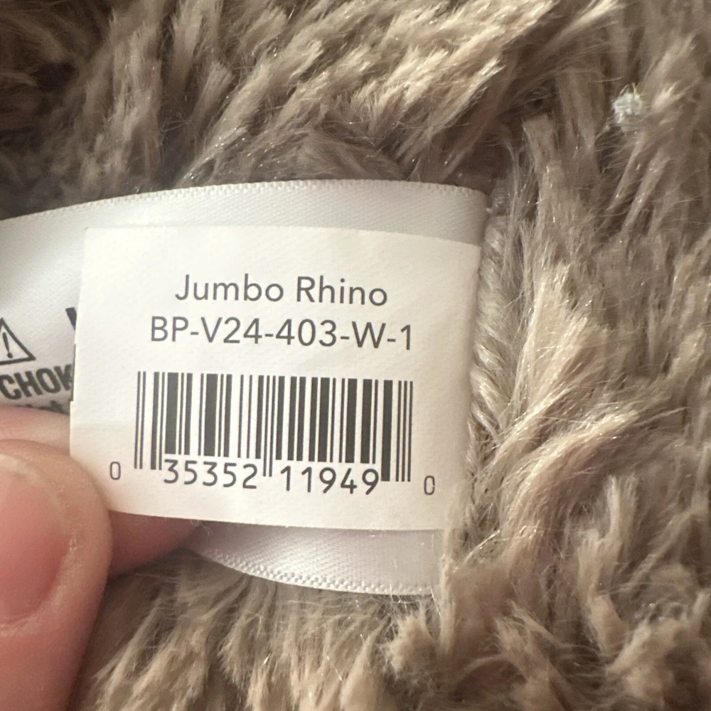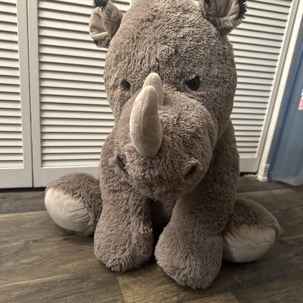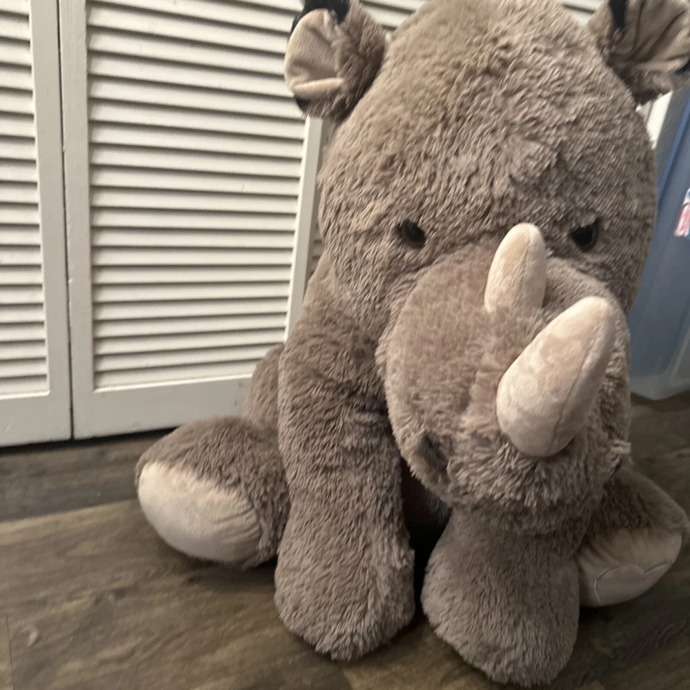 This jumbo rhino stuffed animal is the perfect addition to any collection. Measuring at 40 inches and up, this plush toy is big and soft and snuggly, providing comfort and joy to children and adults alike. Its cute and cuddly appearance makes it a great gift for any occasion, whether it's a birthday, holiday, or just because. With its high-quality materials and attention to detail, this stuffed animal is sure to bring joy for years to come. Its jumbo size makes it a great companion for kids and adults, and its soft and cozy texture is sure to be irresistible. Bring home this adorable rhino stuffed animal today and add a touch of cuteness to your collection.