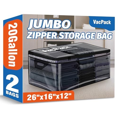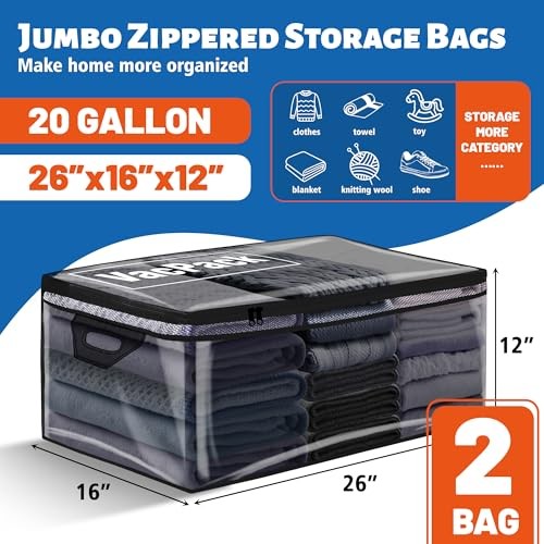 Return Policy Fast Delivery Trusted seller Jumbo Storage Bags Flexible Totes for Clothes, 20 Gallon Extra Large Zipper Bags for Storage (20 Gal-2 pack) Product Description Closet-Slim Jumbos: Roll these soft, oversized bags under the bed, onto closet shelves, or into the attic—swap ugly bins for sleek, flexible storage that hides winter coats, summer quilts, and everything in between without cramping your décor Built to Outlast Seasons: Made from heavy-duty, scent-free plastic that’s 30 % thicker than standard, these bags shrug off dust, pests, and time itself—keep sweaters safe year after year without splits or smells Zip & Lift That Last: Glide the rugged two-way zipper open and shut thousands of times without a snag, then grab the dual reinforced handles Semi-clear plastic lets you identify folded sweaters in seconds, while the mesh zipper strip vents trapped air to keep fabrics fresh all year long Shipping Returns Payment Shipping Shipping is FREE to all addresses other than APO/PO boxes in the lower 48 states. All our stock ships from US-based warehouses. Shipped via USPS or UPS (depending on location and package weight) Unless stated otherwise, all orders will ship within 24-72 hours of your payment being processed. Check our feedback to see the great reviews of FAST shipping we offer. Returns Seller does not accept returns Payment We currently accept payment via eBay managed payments only. Once payment is cleared, we will dispatch your shipment within 1-3 business days. Please refer to the "Shipping" tab for more information regarding shipping speed to your destination.