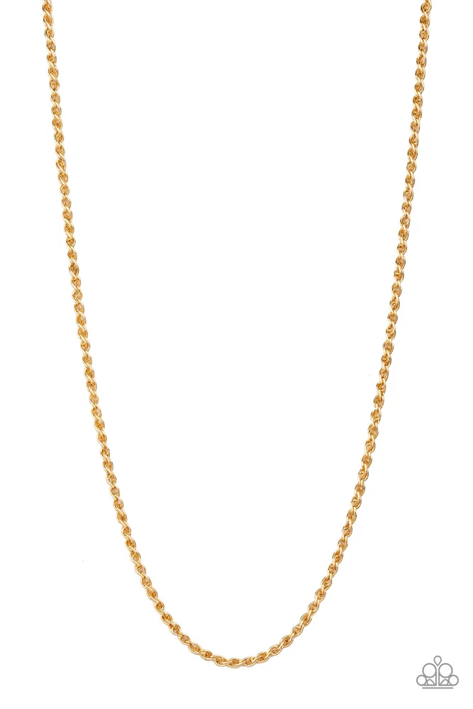 Jump Street - Gold - Paparazzi Accessories Men's Necklace Item ID Number: 882 Color Gold Description A dainty gold wheat chain drapes across the chest for a classic look. Features an adjustable clasp closure. Sold as one individual necklace. Additional Images