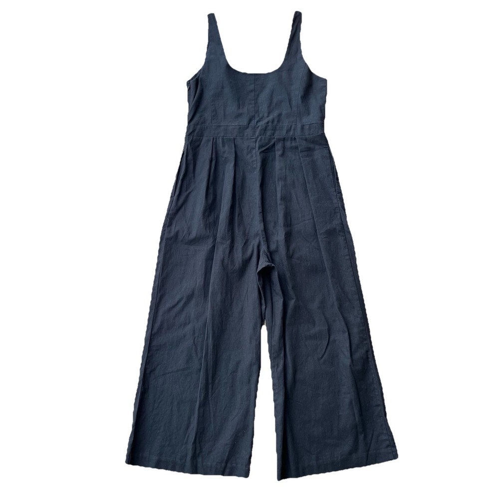 Jumpsuit Linen Blend Cropped Wide Leg Sleeveless Black Size 4 Banana Republic