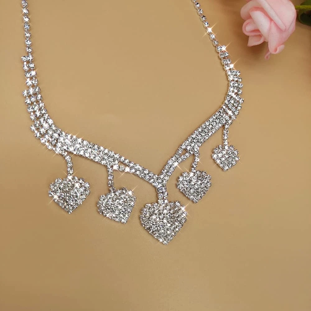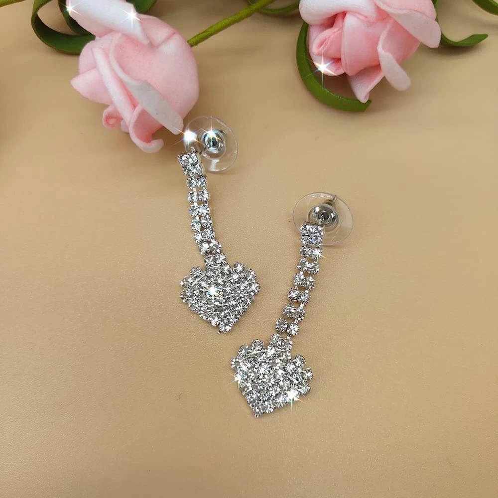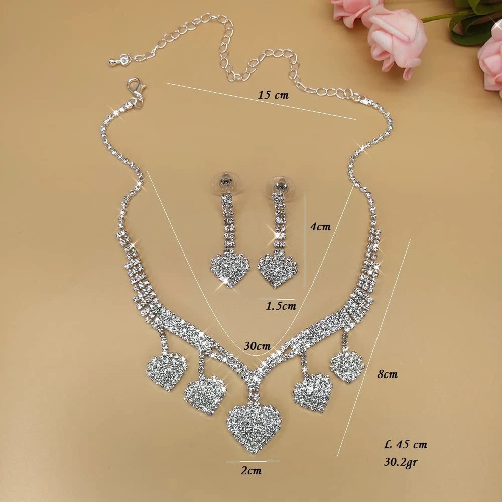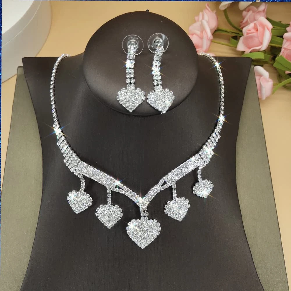 Jumwrit Bridal Necklace Earrings Set Love Heart Necklace Dangling Earrings Silver Heart Tassel Necklace Earrings Set Rhinestone Necklace Earrings Fashion Wedding Jewelry Set for Bride Bridesmaid Product Details Package Dimensions : 3.58 x 2.8 x 1.26 inches; 1.45 ounces Item model number : Jumwrit-Neck Earring-15-Style 2 Department : womens Date First Available : December 24, 2021 Manufacturer : Jumwrit Country of Origin : China Brand, Seller, or Collection Name: Jumwrit Metal stamp: 925 Metal: Silver Material: Rhinestone Gem Type: Rhinestone Clasp: Lobster Clasp Number of stones: 40 Model number: Jumwrit-Neck Earring-15-Style 2 necklace earrings set