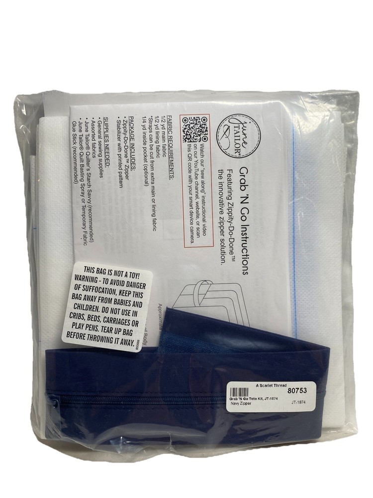 June Tailor Grab 'N Go Tote Kit NEW Includes: "Sew on the line" Printed Stabilizer One Navy Zippity-Do-Done Pre-Sewn Zipper Video Link and Instructions Not Included: 1/2 Yard Main fabric 1/2 Yard Lining Fabric 1/4 Yard Inside Pocket (Optional) NEW See all photos. Check out my other items ! I am happy to combine shipping and only charge actual shipping charges - NO HANDLING FEES! My goal is always 100% complete customer satisfaction. If you feel your item has arrived "not as described", please contact me to arrange for return/refund before leaving feedback I am a trading assistant. I can sell your items for you! |KES-NR|