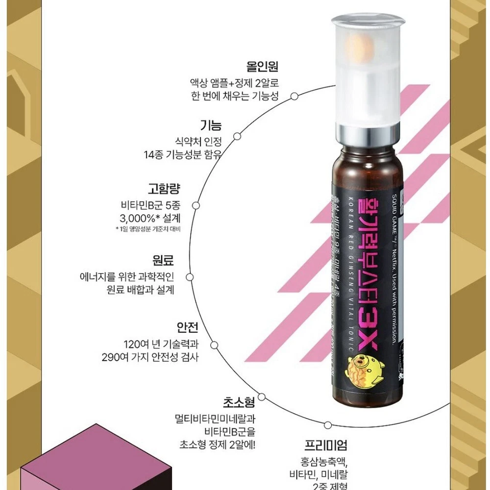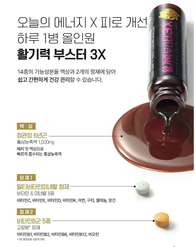 Body Area:BodyActive Ingredients:Ginseng, Red Ginseng, VitaminMain Purpose:Energy & Endurance, Immune SupportDepartment:Adult, Men, Unisex, WomenFormulation:LiquidType:ExtractCountry/Region of Manufacture:Korea, Republic ofBrand:Jung Kwan JangWhen to Take:Once A Day