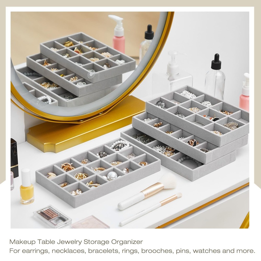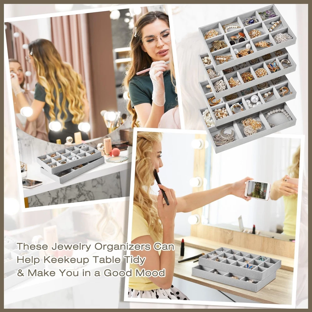 Junkin 12 Pcs Velvet Stackable Jewelry Organizer Trays with Dividers