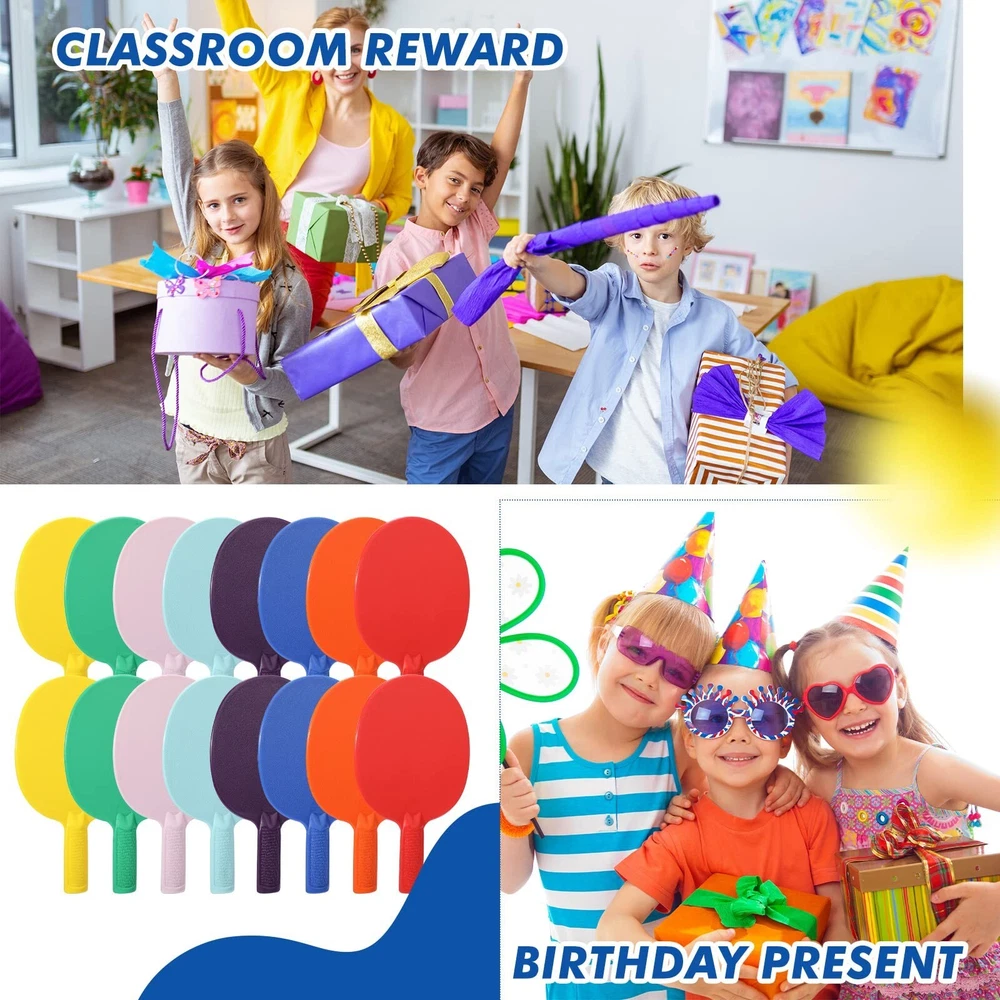 Junkin 16 Pcs Bulk Plastic Table Tennis Paddle Set Multi Color Sports Table Tennis Paddle Racket Table Tennis Equipment for Indoor Outdoor Camp, Vacation, Easy Grip and Light Spin(16 Pcs) Product Details Brand: Junkin Color: red, yellow, green, blue, purple, orange, light gray, light green Material: Plastic Product Dimensions: 11.81"L x 11.41"W x 7.48"H Sport: Table Tennis Item Weight: 1.96 Kilograms Assembly Required: No Number of Players: 16 Base Material: Plastic Frame Material: Plastic Brand: ‎Junkin Color: ‎red, yellow, green, blue, purple, orange, light gray, light green Material: ‎Plastic Product Dimensions: ‎11.81"L x 11.41"W x 7.48"H Sport: ‎Table Tennis Item Weight: ‎1.96 Kilograms Assembly Required: ‎No Number of Players: ‎16 Base Material: ‎Plastic Frame Material: ‎Plastic Top Material Type: ‎Plastic Age Range (Description): ‎Adult Item Package Dimensions L x W x H: ‎11.26 x 8.74 x 3.78 inches Package Weight: ‎1.96 Kilograms Item Dimensions LxWxH: ‎11.81 x 9.06 x 7.48 inches Brand Name: ‎Junkin Suggested Users: ‎unisex-adult Number of Items: ‎16 Manufacturer: ‎Junkin Part Number: ‎RE-Junkin-3492 Included Components: ‎16 x Paddles Date First Available: February 13, 2023 Package Include: you will get 16 pieces of table tennis paddles in 8 different colors, enough quantity for you and your family, suitable for both indoor and outdoor training and playing, ideal for most ages and skill levels, you could play these table tennis games with your partners and family Safe Material: the table tennis rackets bulk are made of quality plastic material, safe and serviceable, no bad smell and no harm to human body, lightweight but not easy to break, both adults and children can use these table tennis games paddles with confidence, which will be a good gift for school and family Anti Slip Handle Design: our handle of this table tennis racket is designed with anti slip texture to protect your hands while preventing the racket from slipping; Thin handles won't break when dropped, and each paddle is tested for optimum performance and unmatched quality Comfortable Handle: the portable table tennis paddles with soft and light weight handles, which will protect your hand, these table tennis handles are designed with flared, narrower at top and wider at bottom, this design will offer nice grip and enough flexibility Wide Application: the soft table tennis paddles are suitable for beginners, intermediate level players, skilled people and people who are interested in playing table tennis games, enough quantity for 16 players and more to play together, you could store these sports table tennis paddles at home for holiday parties to play with family