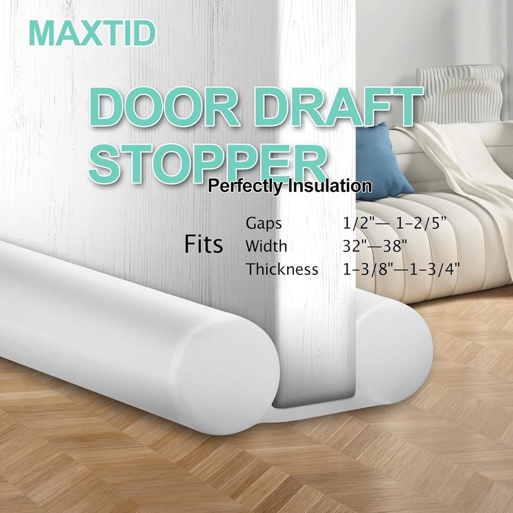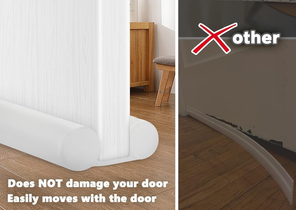 Juntas Para Puerta Para Debajo De La Burlete Puertas Aislante Adhesivo Fuerte US Ajustable y fácil de instalar: el tamaño del bloqueador de corrientes de aire para puerta es de 38'' y se adapta a espacios de puerta de 1.3''. Bloquea el flujo de aire caliente o frío del exterior, lo que ayuda a reducir las facturas de energía. Este protector de corrientes de aire también ayuda a reducir la luz, el ruido y los olores o insectos. Se mueve fácilmente con la puerta y se desliza sobre alfombras, madera, baldosas y linóleo. El bloqueador de corrientes de aire blanco combina con el color de su puerta. Si lo desea, puede usar rotuladores de pintura para agregar un diseño a la tela blanca, escribir algo, dibujar o cualquier otra cosa que se le ocurra. Consejos: el efecto de sombreado del tope de puerta blanco no es tan bueno como el de otros colores. Si necesita sombreado, se recomienda comprar topes de puerta de otros colores.