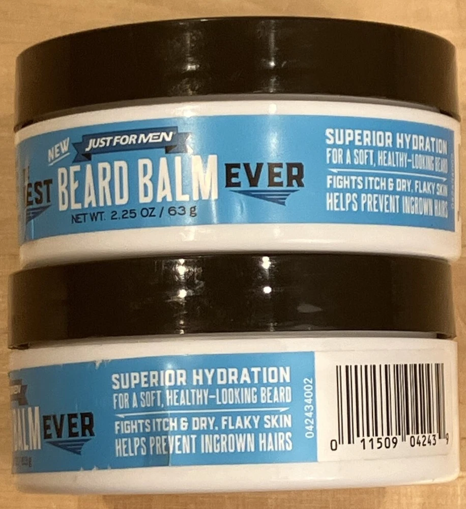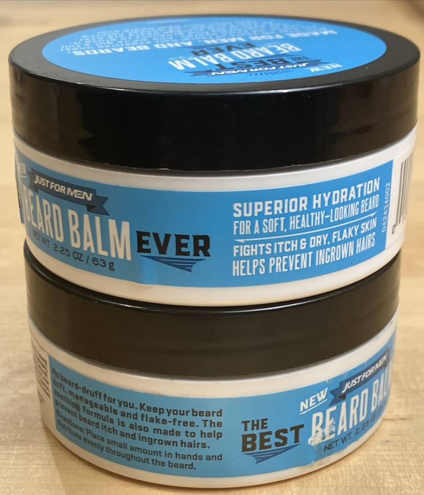 Lot of 2 Just for Men The Best Ever Beard Balm 2.25oz Just for Men introduces The Best Ever Beard Balm 2.25oz. Designed for men, it keeps your beard soft, manageable and flake-free. Helps Prevent Ingrown Hairs Helps Prevent Beard Itch Just For Men Brand Product Fights Itch & Dry Flaky Skin Leaves Beard Soft and Smooth Contains soothing Oatmeal, Aloe, Chamomile, Jojoba oil Size: Beard Balm 2.25oz To upcycle, I reuse shipping material as often as possible. Buy more from my store and save on shipping.