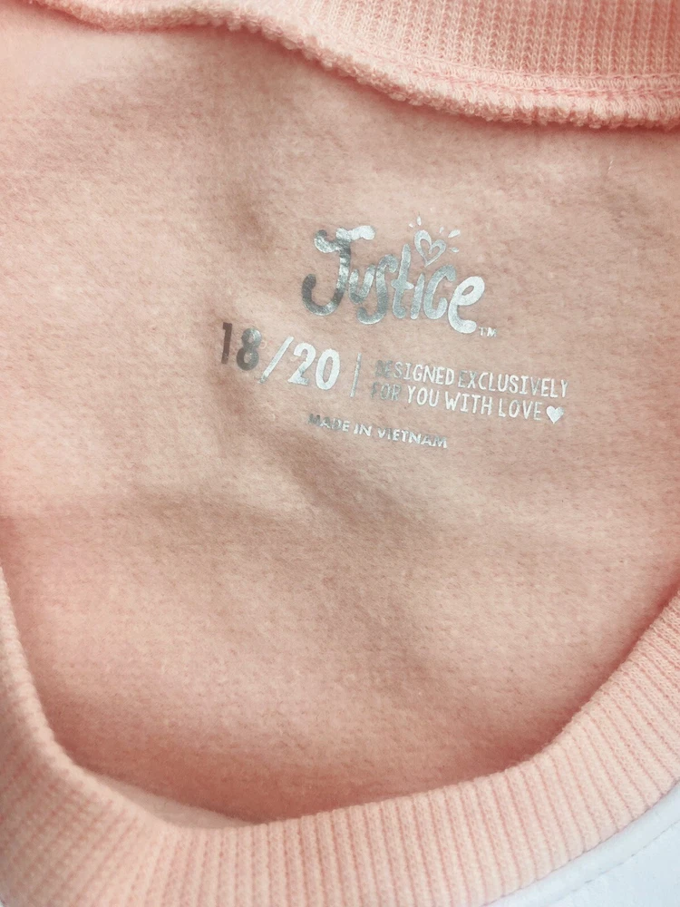 Add some sparkle to your little girl's wardrobe with this Justice Girls 18/20 Pink Glitter Reindeer Sequin Pocket Fleece Sweater. The pullover style sweater features a round neckline and long sleeves, perfect for keeping your little one cozy during the holiday season. The faux fur, polyester, and cotton material make it a durable and comfortable choice for both casual and party occasions. The sweater is adorned with glitter accents and features a cute reindeer design, making it a perfect addition to your little girl's anime and animal-themed wardrobe. It also comes with pockets, making it a practical choice for everyday wear. This sweater is a must-have for any parent looking to add some fun and festive flair to their child's wardrobe.