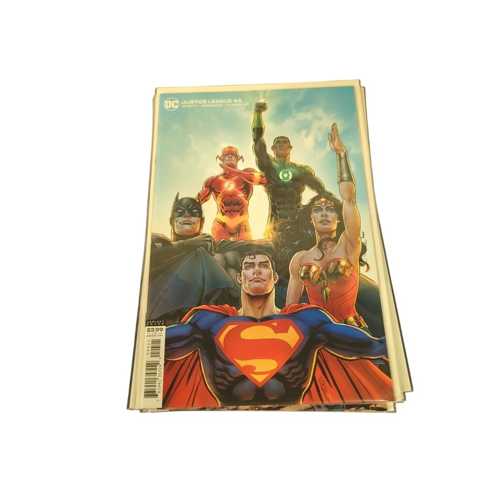 Dive into a thrilling run of the Justice League's adventures with this lot of Justice League #41-45, published by DC Comics in 2018! This set is a great way to experience a continuous storyline. This run of comics is part of the "No Justice" storyline, which leads directly into the start of a major new era for the Justice League. It brings together a massive roster of heroes and villains to confront a cosmic threat unlike any they have faced before. With an all-star creative team, this story serves as a crucial bridge between two major arcs, setting the stage for the team's new mission and roster. Don't miss these action-packed chapters! We combine shipping! Please see the provided photos for condition. If you have any further questions, we are happy to answer!