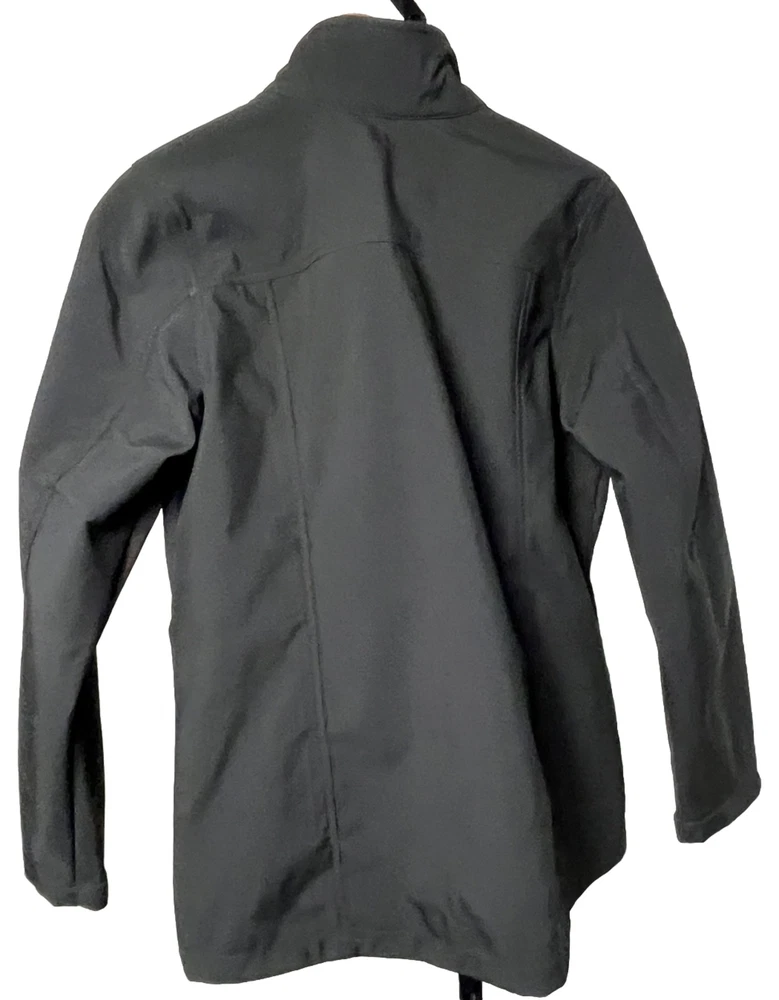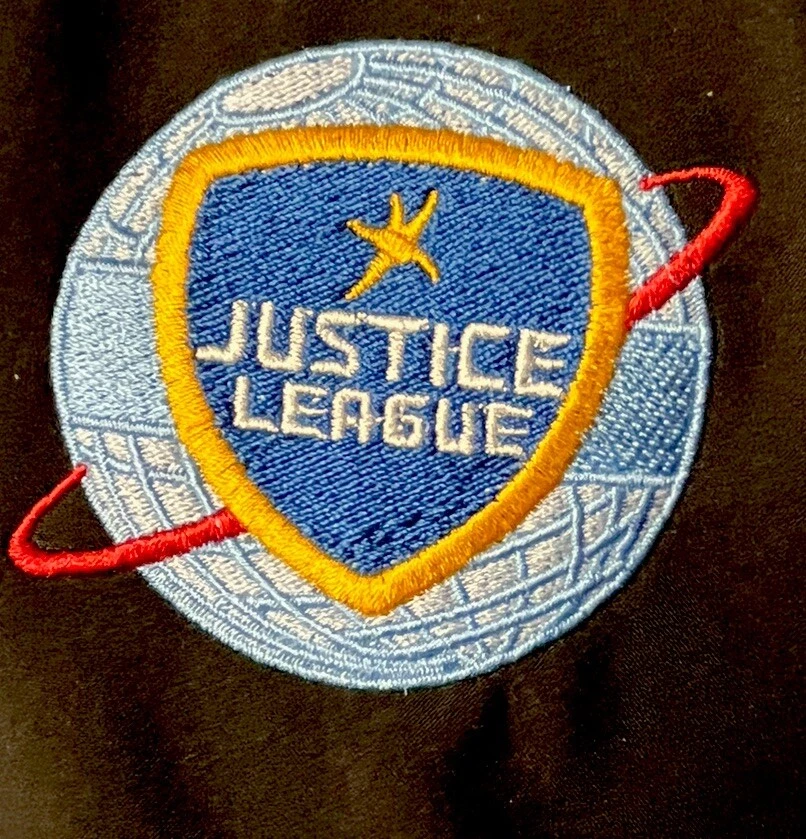 Justice League Jacket Women’s Large Soft Shell Black Full Zip Pockets Fleece Lined Coat Justice League Patch Hook Loop Closure Cuff, Interior Pocket, Long Sleeve Bust 42”, Length 29” EUC