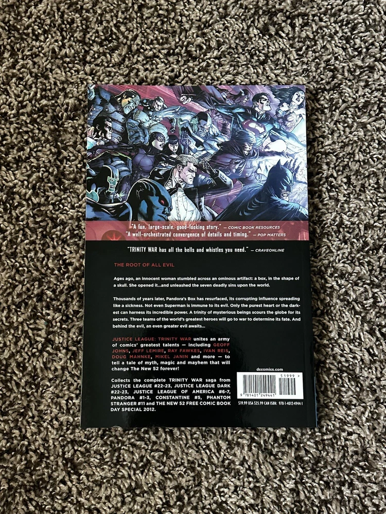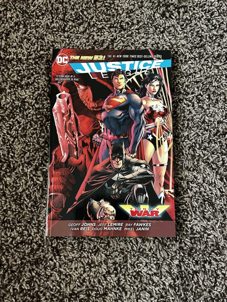 The product is a DC Comics graphic novel titled "Justice League: Trinity War," published in May 2014 as part of the Modern Age era of US Comics. The story features various characters such as Batman, Superman, Wonder Woman, and other members of the Justice League facing off against each other in a conflict known as the Trinity War. Illustrated by artists like Ivan Reis and written by Geoff Johns, this superhero comic book explores themes of superheroes, fantasy, and suspense within the DC Comics universe. This book is in pristine condition! Send offers!
