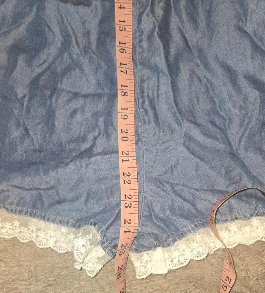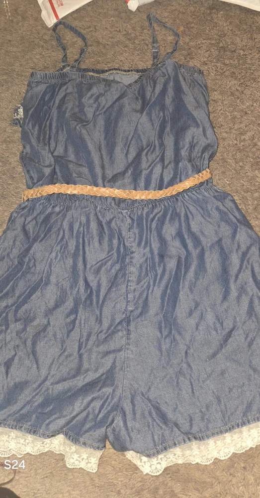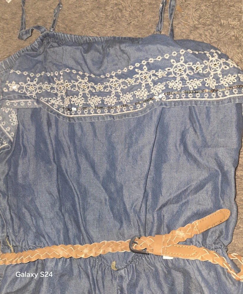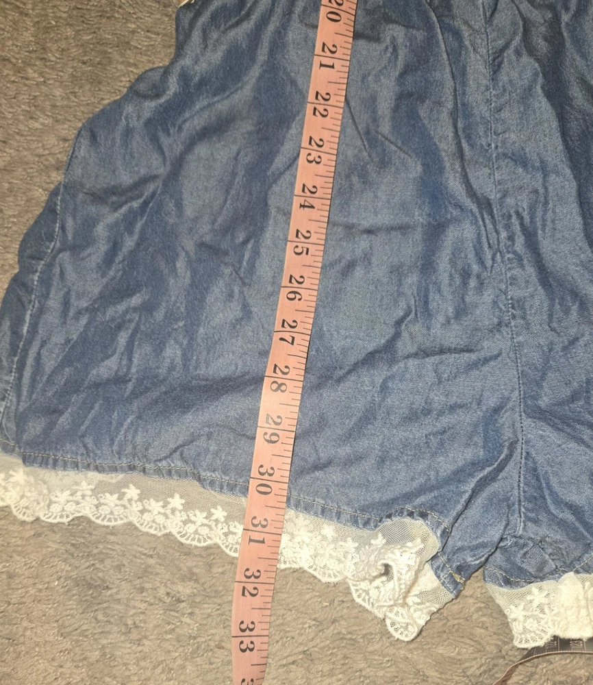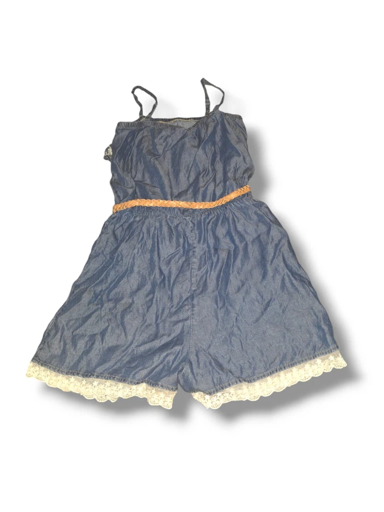 Justice Size 18 Chambray Romper Peasant Cottagecore Denim Lace Sequins. Shipped with USPS Ground Advantage.