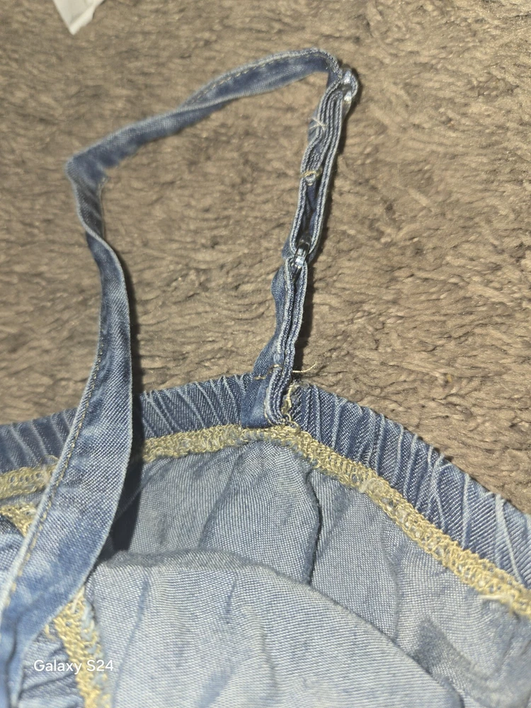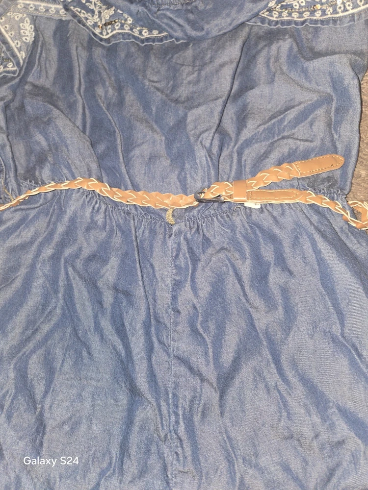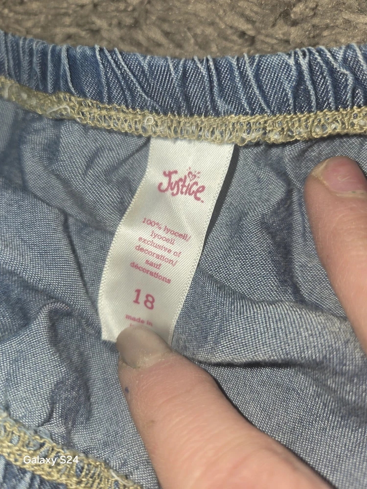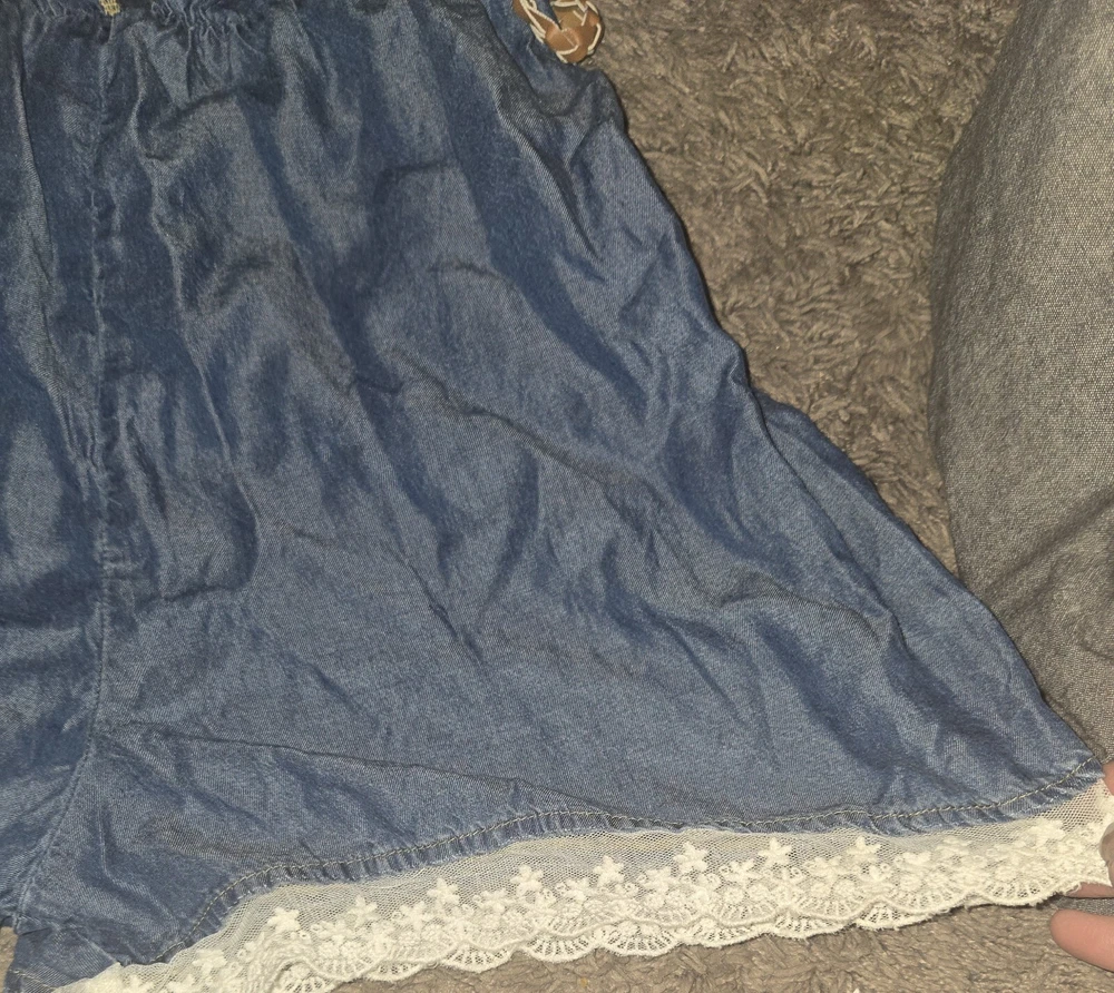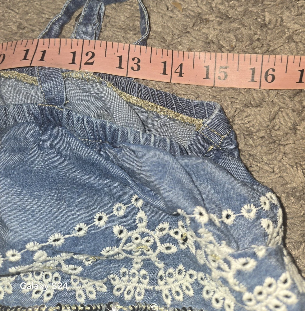 Justice Size 18 Chambray Romper Peasant Cottagecore Denim Lace Sequins. Shipped with USPS Ground Advantage.