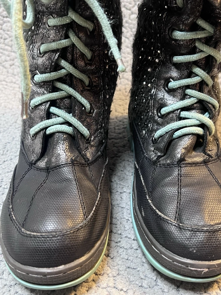 Justice Sparkle Snow Boots Girls Size 3 Gray And Blue With Faux Fur good condition any flaws are shown in photos SKU(A336)