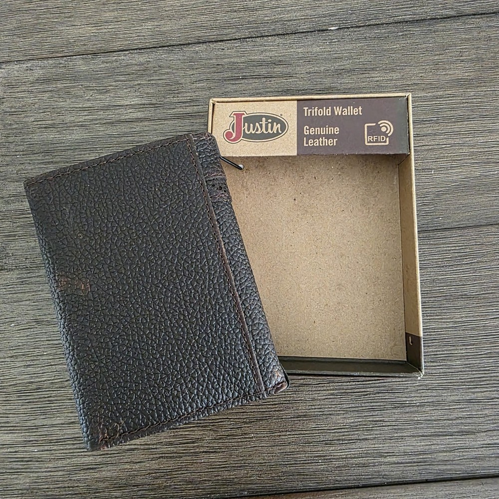 Justin Boots Genuine Leather Men's Trifold Wallet w/ RFID Stitched Logo Western