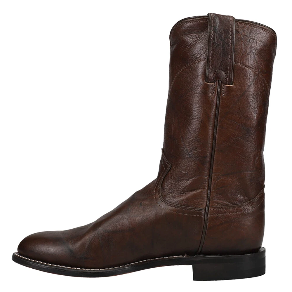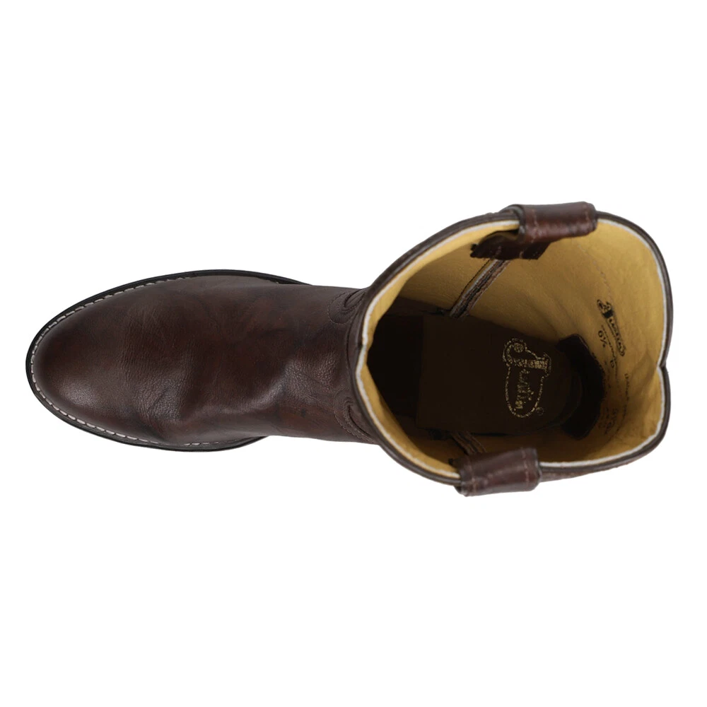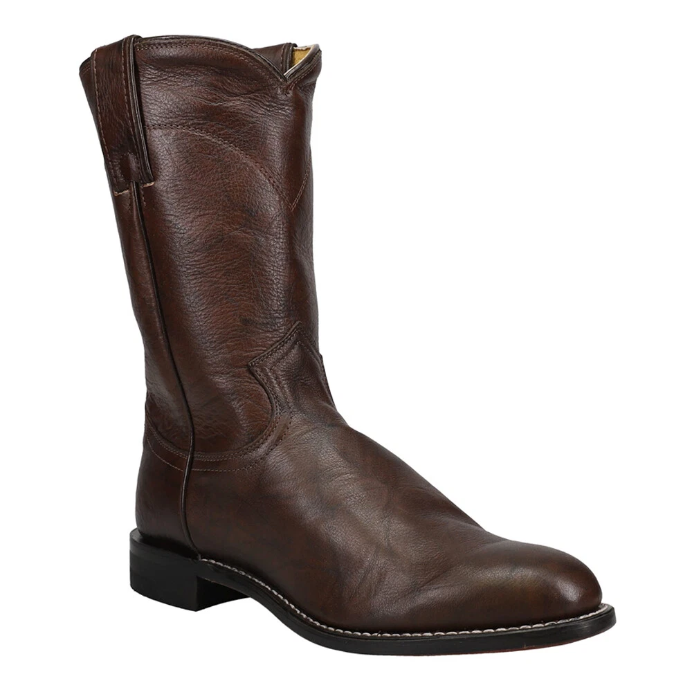 Jackson 10 inch Round Toe Roper Boots 3162-JB Product Details Full grain leather upper Medium round toe 1” heel, 12 inch shaft Full welt with single row stitch Hand-nailed leather outsole An understated classic, this roper boot is a simple brown boot with a traditional silhouette. The quality leather exterior glistens with the sheen of luxury and its round toe and unit heel provide a relaxed fit in and out of the stirrup. The J-Flex Flexible Comfort System insoles keep things comfortable with leather-covered cushioned insole and triple density insole board. Additional Details Color: Brown Occasion: Dress Gender: Mens Age: Adult Brand: Justin Boots