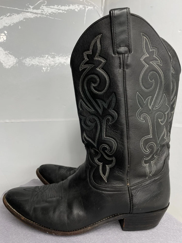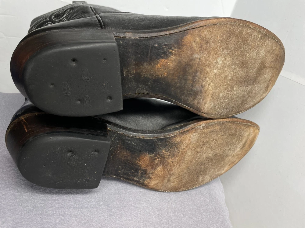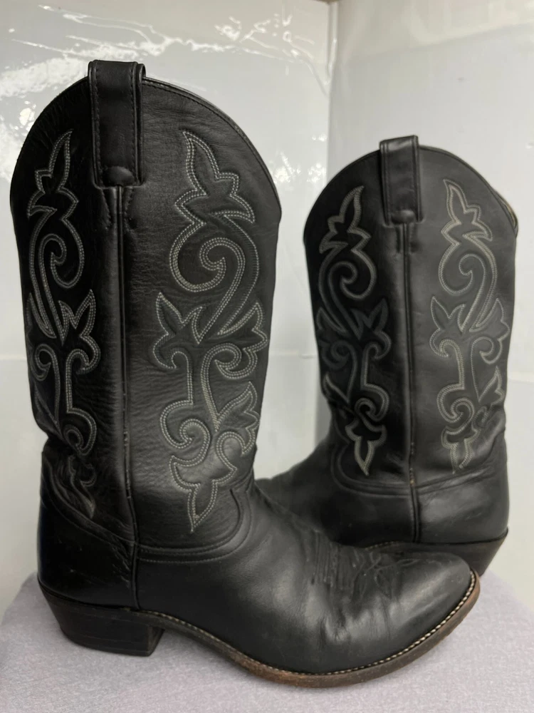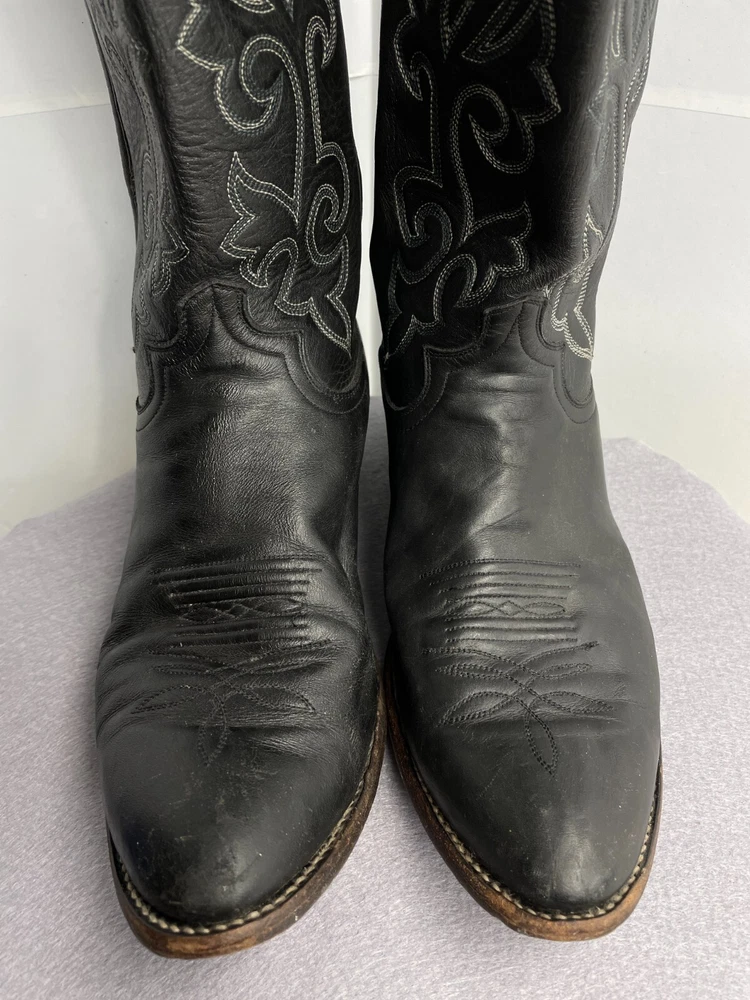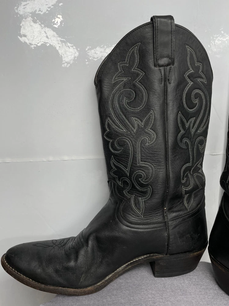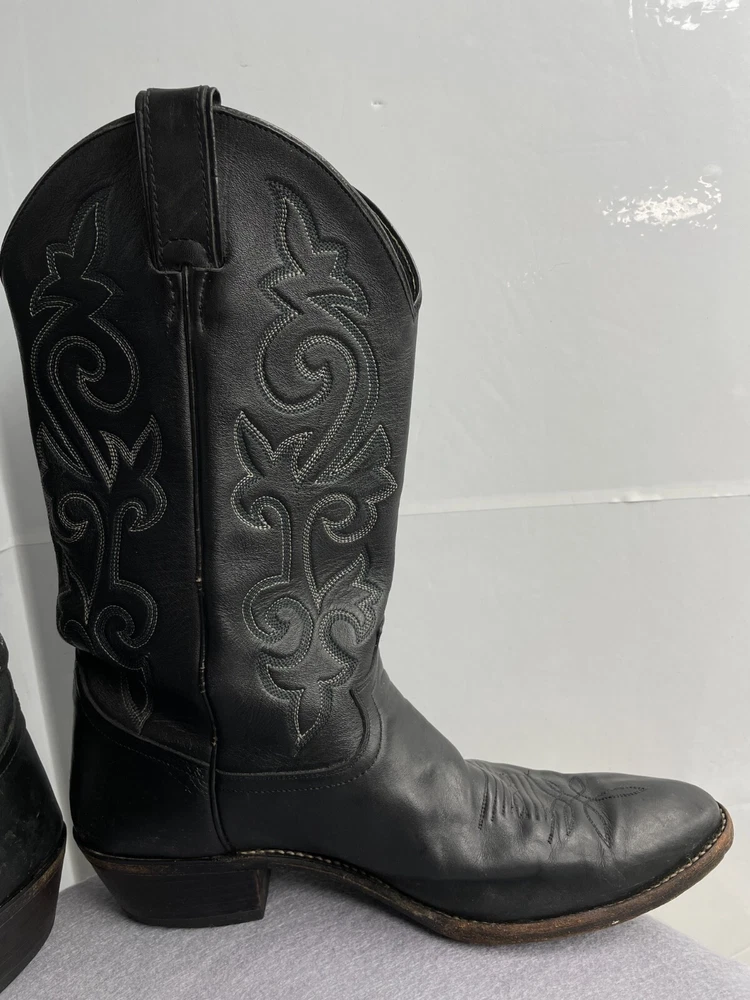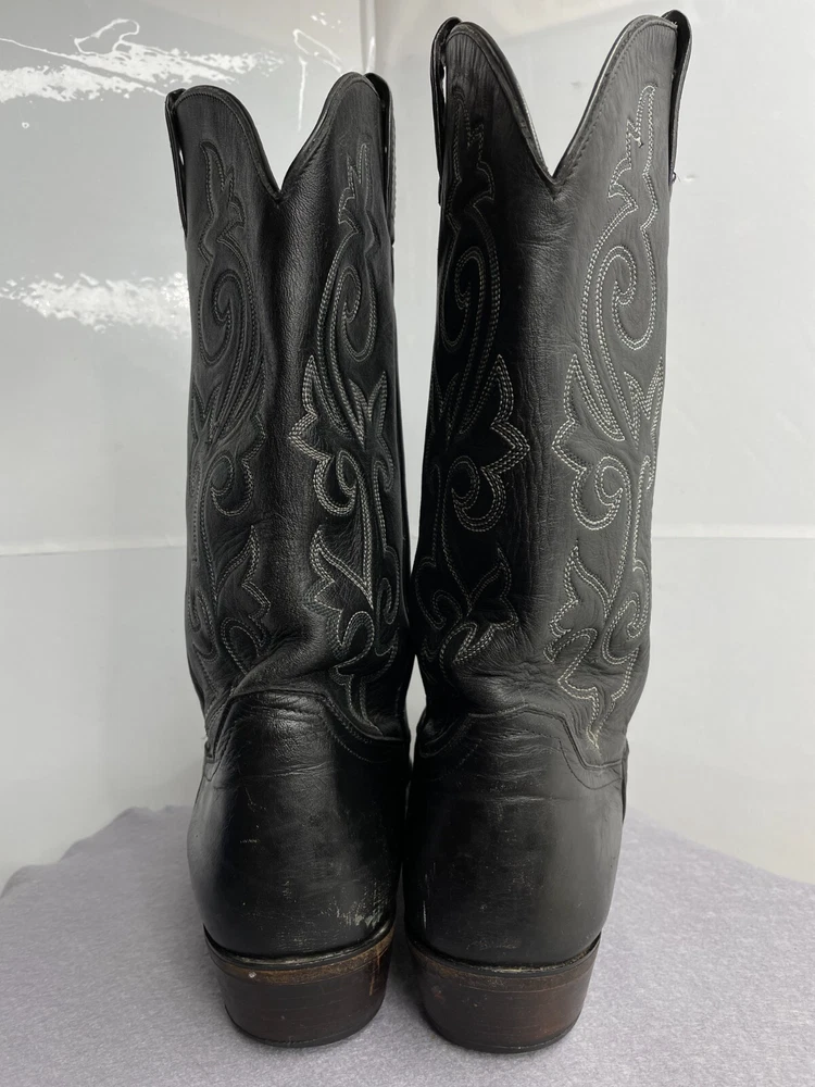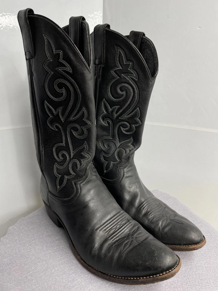 Justin Leather Western 1409 Boots Black Cowboy Embroidered Men's 12 D