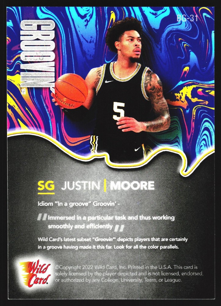 You will receive a Near Mint or Better, Justin Moore, 2022 Wild Card, , Villanova Wildcats card PLEASE NOTE: SOME CARDS THAT GO THROUGH OUR SCANNER MAY APPEAR TO HAVE LINES THROUGH THEM. THEY ARE NOT ACTUAL SCRATCHES, SIMPLY FALSE IMAGE LINES. WE WILL NOT INTENTIALLY SELL, DAMAGED CARDS. NEW CARDS LISTED DAILY ORDERS SHIP NEXT DA Y (Weekends as mail service is available) VISIT OUR STORE FOR MORE DEALS! USE THE SEARCH ICON IN THE STORE TO FIND YOUR FAVORITE TEAMS & PLAYERS! Be sure to save us as sellers to be the first to be notified when new and exciting cards are posted! Please note, we are not professional graders, and the condition of the card you purchased is highly subjective. Please refer to the high quality scans of the card you are viewing, and determine the condition of the card for yourself. Feel free to reach out with questions! All cards are in EX-NM+ condition, unless stated otherwise Chrome cards from various brands might have minor light surface scratches, which is typical with these type of cards. Any major, deep scratches or major surface issues will be noted, if present. We take pride in the condition of all of our cards, including commons. Our promise to you, is that we will not sell a card we would not buy ourselves. Of course things slip by, however customer service is our #1 Priority, and we are always here for a message for ANY, and ALL issues. Thank you very much for stopping by, feel free to reach out! - Titan (Son) & Andy (Dad)