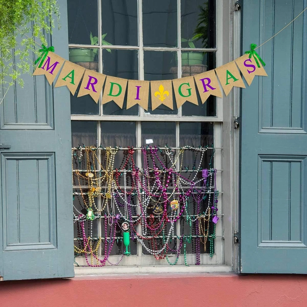 Jute Burlap Mardi Gras Banner March Party Mantel Fireplace Garland Decoration Su