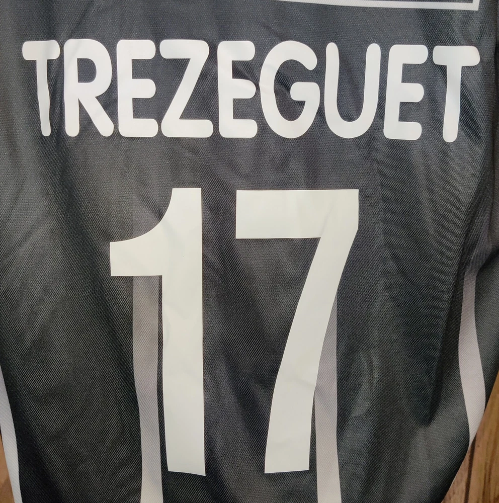 Show your support for Juventus with this rare retro soccer shirt featuring David Trezeguet's number 17. Made by Lotto, this shirt is perfect for any fan of the Serie A team. It is designed for men and comes in size L, with the iconic Juventus logo and Trezeguet's name printed on the back. This shirt is a must-have for any soccer fan who wants to show their love for the sport. It is made in China and is perfect for wearing to games or just out and about. Get your hands on this rare Juventus Trezeguet shirt and show your support for the team!
