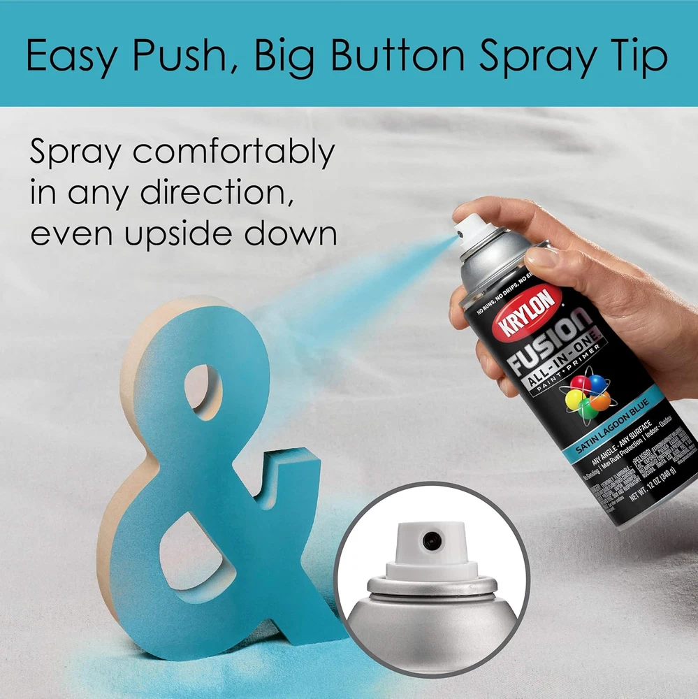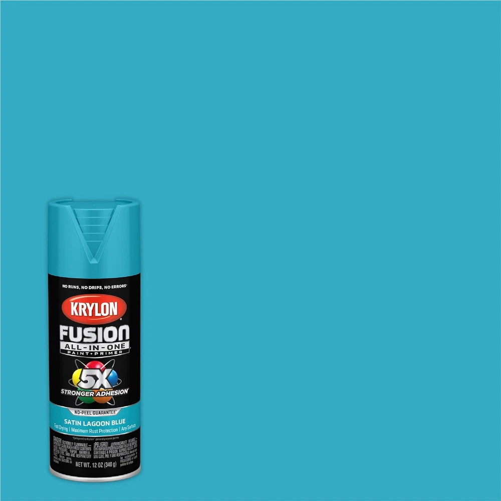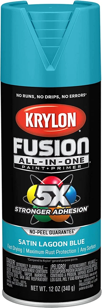 Unit Count: 12.0 Ounce Batteries Included?: No Color: Lagoon Blue MPN: Does not apply Item Volume: 12 Fluid Ounces gtin13: 7445003262223 Specific Uses For Product: Interior/Exterior Style: Satin Special Features: Rust Resistant Finish Type: Satin Included Components: Lagoon Blue - 12 ounce, Krylon K02741007 Fusion All-in-One Spray Warranty Description: Satisfaction Guaranteed Batteries Required?: No Model Name: Fusion All-In-One Spray Paint for Indoor/Outdoor Global Trade Identification Number: 00724504127413 Package Information: Can Paint Type: Spray Surface Recommendation: Wood Item model number: K02741007 Coverage: 15 ft²/can Material: solvent based Brand: Krylon® UPC: 7445003262223 Country of Origin: USA Type: Does not apply Part Number: K02741007 Manufacturer: Krylon® Finish: Satin Full Cure Time: 48 Hours Size: 12 Ounce (Pack of 1) Age Range (Description): Adult Item Weight: 15.8 ounces Indoor/Outdoor Usage: Outdoor, Indoor Special Feature: Rust Resistant Product Dimensions: 2.61 x 2.61 x 7.96 inches Item Form: Aerosol Item Package Quantity: 1