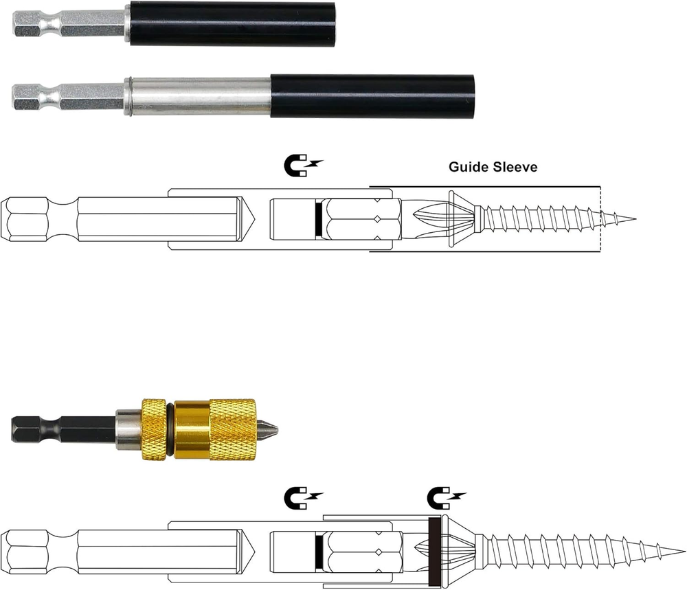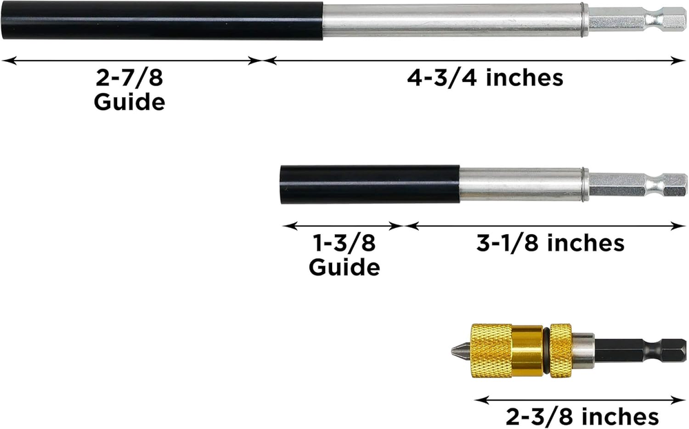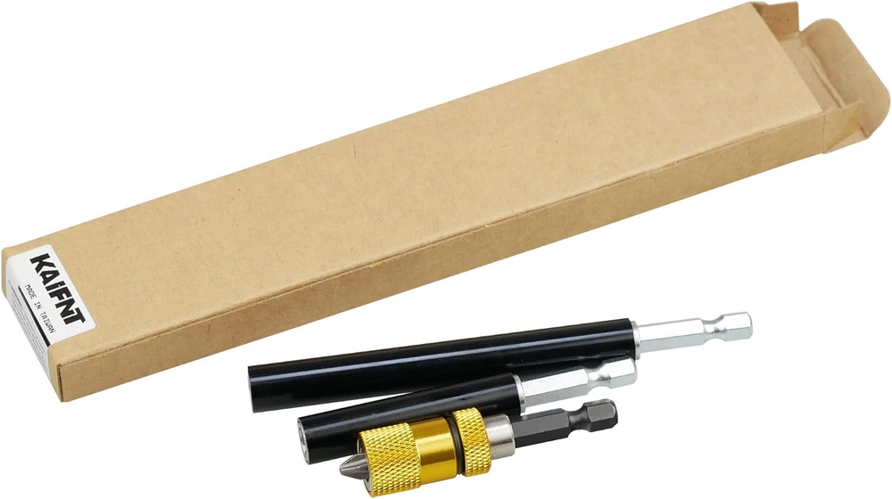 Store New Arrivals Add to Favorite View Feedback K406 Magnetic Bit Holder Set with Guide Sleeve and Adjustable Depth Magnetic Tip, 3-Piece Description Item model number K406 Part Number K406 Style Guide Sleeve Finish Shiny Anodizing Drive Bit Shank Style 1/4-inch Hex Bit Compatibilities 1/4-inch hex shank, 1-inch insert bit Item Package Quantity 1 Material Chrome Vanadium Steel Batteries Required? No Compatible Fastener Range Standard 1-inch fasteners (flathead, Phillips, Torx) of various sizes Number of Pieces 3 Item Weight 3.03 ounces Batteries Included? No Item Length 4.75 Inches Finish Type Shiny Anodizing Size 2-3/8, 3-1/8, 4-3/4 inches Extensions Works with all 1-inch insert bits Magnetic bit holder provides convenient pick-up and retention of screws Self-retracting guide sleeve protects fingers and keeps the fasteners straight Adjustable depth bit holder to adjust bit position to control depth of screw. Tip ring magnet holds screw securely for accurate fastening Bit holders Include a magnetic tip and two guide sleeves of different lengths, 2-3/8, 3-1/8 and 4-3/4 inches Product description KAIFNT K406 Magnetic Bit Holder Set with Guide Sleeve and Adjustable Depth Magnetic Tip, 3-Piece The magnetic bit holders are equipped with guide sleeve to protects fingers and holds screws in place and adjustable depth magnetic bit holder is equipped with strong magnetic tip to allow for secure grip of screws. Bit Holder, Guide Universal 1/4-inch quick-change hex shanks fit all power drills, impact drivers, and hand-held drivers. This set is magnetic bit holder with guide sleeve to protects fingers and holds screws in place and adjustable depth magnetic bit holder with strong magnetic tip to hold screw securely in place for easy and accurate fastening. Set Includes • 2-piece magnetic bit holder with guide sleeve • 1-piece adjustable depth magnetic bit holder with magnetic tip 3-1/8 inches extension magnetic bit holder with guide sleeve 4-3/4 inches extension magnetic bit holder with guide sleeve 2-3/8 inches adjustable depth magnetic bit holder with magnetic tip A COMPANY OVERVIEW Our company is located in Taiwan and has been selling tools for more than 20 years. The factory has grown rapidly over the last several years, and employees have the experience, education and training. We value cooperation and quality management between factories. OUR PRODUCTS Kaifnt continually strives to bring fresh ideas and new products to its customers. Our products don’t have cheap goods from China and are dressed in environment-friendly packaging. As such, customers and consumers don’t have to worry about the the quality and value in our products. Our mission is to offer our customers products that exceeds their expectations in cost and performance rather than being forced by cost-reduction. ABOUT US We offer the best prices around on high quality products. Our E-store includes media such as books, movies, music and games while offering electronics, toys, sporting apparel, clothing, tools, general home, garden items and more. SHIPPING We are always working hard to ensure your package arrives as soon as possible. Please understand that some factors like weather, high postal traffic, and the performance of shipping companies are outside of our control. We offer free shipping to the lower 48 states and ship within 2 business days of payment, usually sooner. We do not accept P.O. Boxes. Please provide a physical address. RETURNS We offer a 30-Day Return Policy on items which you are not completely satisfied with. You have the option for a full-refund or an exchange of the item. No returns are available on items shipped outside of the USA. PAYMENT We accept PayPal. CONTACT US This page content is yet to come Please ad us to your favorite seller and visit again later Thank You