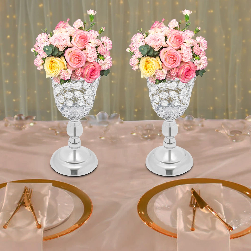 Specifications Color: Silver Style: Elegant Material: Iron, K9 Crystal, EVA Process: Electroplating Mounting Type: Tabletop Assembly Required: No Number of Pieces: 2 Base Diameter: 11cm/4.33in Each Top Diameter: 14cm/5.51in Each Product Height: 25.5cm/10.04in Package Size: 31*25*15cm/12.2*9.84*5.91in Gross Weight: 1.5kg/3.31lbs Net Weight: 1kg/2.2lbs Package Included 2* Wedding Flower Vases welcome Description Description As a wedding day approaches, it is essential to pay attention to the decorations, including the arrangement of fresh or artificial flowers. At a time when couples seek to create a romantic and enchanting atmosphere, wedding flower vases have become a popular choice. These elegant vases have been given an electroplating treatment to ensure their longevity and are ideal for decorating a wide range of spaces. Key Features Build to Last: The product mainly made of K9 crystal and iron with the electroplating process boasts high hardness, corrosion resistance, rust resistance, wear resistance , and a long service life. Elegant Appearance: Carefully designed trumpet shape, elegant silver color, and beautiful crystal beads give this product a pleasing appearance, paired with beautiful bouquets(not included), making the table decoration more attractive and unique, brightening up your wedding, and leaving impressions on your guests. Suitable Size: The appropriate base(4.33 inches) and height(10.04 inches) make this product an excellent decoration for placing on the table. Cost-effective: This set includes 2 pieces to keep your tables from monotonous. You can also purchase more to meet your needs. Moreover, they are reusable, saving you the cost of replacing other decorations next time. Easy to Install: A full range of accessories and simple construction allow you to install and use this product easily and quickly. Simple Clean-up: It has a smooth surface and a simple structure, so you only need to wipe the dust off its surface with a towel(not included). Ideal Gift: Its gorgeous appearance makes it an excellent gift for your friends, families, and colleagues to decorate their rooms or event sites. Protective Package: To prevent the product from being damaged during transportation, we packed it with bubble bags to protect your products to the maximum extent possible. Buy with Confidence: We stand behind all our guests and look forward to assisting you with your purchase. It is our pleasure to answer your confusion and questions. The end of the story between us is not "we sell and you buy". Details Sturdy Base: The 4.33-inch round base with an EVA pad gives stable support, preventing it from easily sliding or wobbling. Large Opening: Its 5.51" diameter can hold more flowers and artificial flowers(not included) for more beautiful arrangements. Application It can be a nice centerpiece decoration for weddings, Christmas, Thanksgiving Day, New Year, Valentine's Day, parties, dinners, holidays, birthdays, anniversaries, or other special events. It is suitable for homes, living rooms, dining rooms, bedrooms, tabletops, dining tables, shelf decors, offices, etc. Specifications Color: Silver Style: Elegant Material: Iron, K9 Crystal, EVA Process: Electroplating Mounting Type: Tabletop Assembly Required: No Number of Pieces: 2 Base Diameter: 11cm/4.33in Each Top Diameter: 14cm/5.51in Each Product Height: 25.5cm/10.04in Package Size: 31*25*15cm/12.2*9.84*5.91in Gross Weight: 1.5kg/3.31lbs Net Weight: 1kg/2.2lbs Package Included 2* Wedding Flower Vases Notes Please carefully check if the size is suitable before placing an order. Flowers are not included in the package. The product adopts a hollow design and cannot hold water. Please allow the slight color difference caused by the shooting light and 1-3cm error due to manual measurement, and make sure you do not mind before you order. Payment Delivery details Terms of sales About us Contact us Payment We accept ebay payment 。 Fees such as import duties, taxes are not included in the item price or shipping costs. These charges are the buyer's responsibility. Delivery details Shipping: 2-9 working days to: USA Terms of sales We maintain high standards of excellence and strive for hundred percent customer satisfaction. Feedback is very important to us. We hope that you contact us immediately before you give neutral or negative feedback, so that we can address your concerns. It is impossible to address issues if we do not know about them! About us Your satis faction is our ultimate goal. We work hard to earn your trust and future business. Our certified technicians have tested each item before shipping. The unit comes with 1 year limited warranty on all manufacturing defects. a) If you receive a defective item, you may return it or ask for a discount. Please contact us within 14 days after you receive the package. b) What you returned must be intact and in its original packaging as re? u. Customer is responsible for shipping costs of the returned item. c) We will cover the cost of shipping back t with the shipping rate indicated in the registration page. We will send you a new unit or refund the full payment you paid. Thank you. Contact us Business Hour Business Hour: Monday To Friday: 8:30 AM to 5:00 PM (Beijing China time) Due to time zones, our reply to your questions may not be immediately. But within above working time, we will reply your email within 24 hours. If it's non-workdays, please kindly be patient and wait till Monday. Please contact us with ebay message. Please feel free to contact us if you have any questions. Monday To Friday: 8:30 AM to 5:00 PM (Beijing China time) Due to time zones, our reply to your questions may not be immediately. But within above working time, we will reply your email within 24 hours. If it's non-workdays, please kindly be patient and wait till Monday. Please contact us with ebay message. Please feel free to contact us if you have any questions.